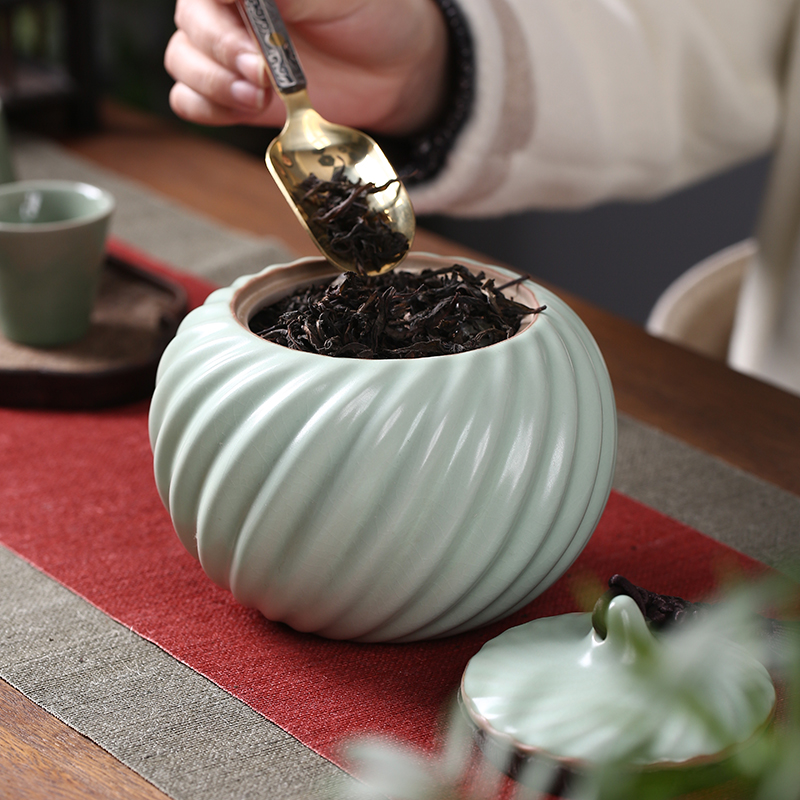 Ru kiln open tea pot ceramic tea pot sealed pot household tea storage pot large-capacity Pu'er tea gift box