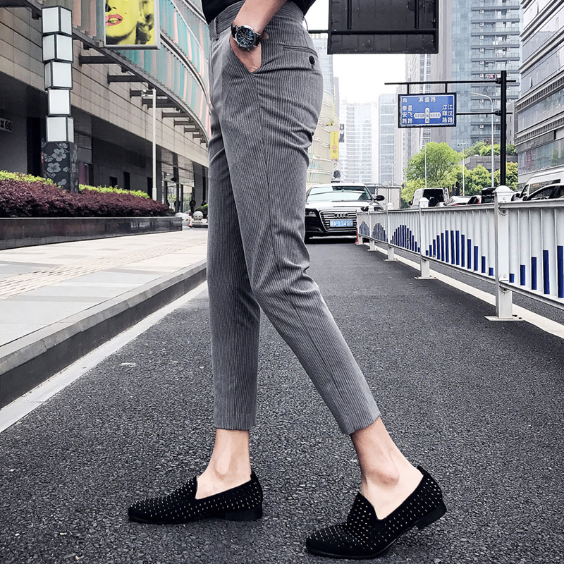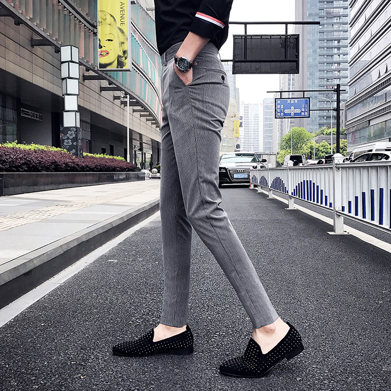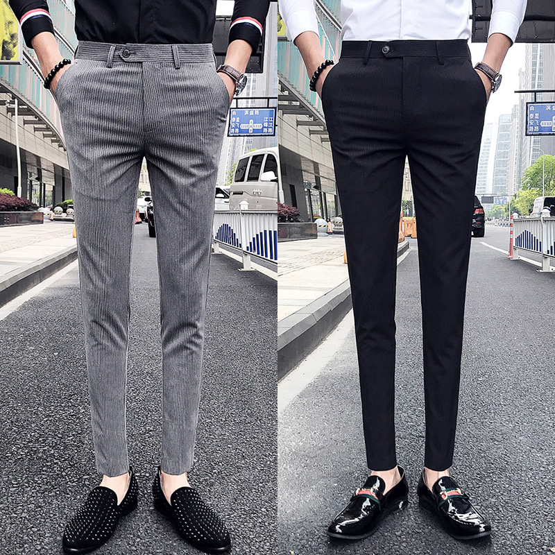 Pure cotton pants men's spring and summer slim pants Korean version of the trend business fall feeling elastic casual 100-point pants