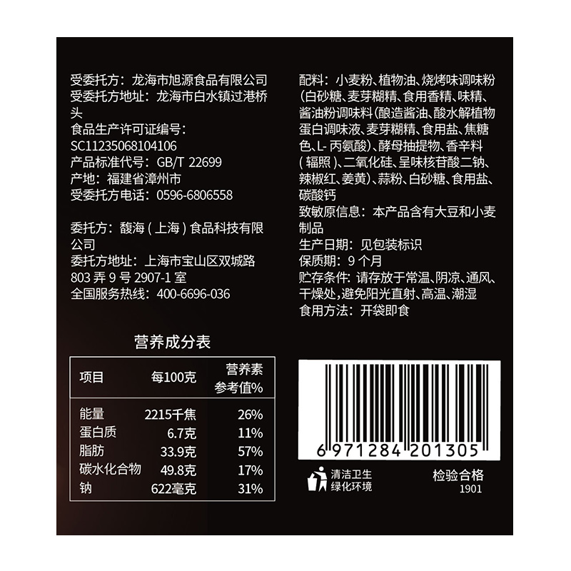 Corn flour Wheat flour Vegetable oil Barbecue flavor seasoning Monosodium glutamate Soy sauce powder Garlic powder White sugar Edible salt, etc