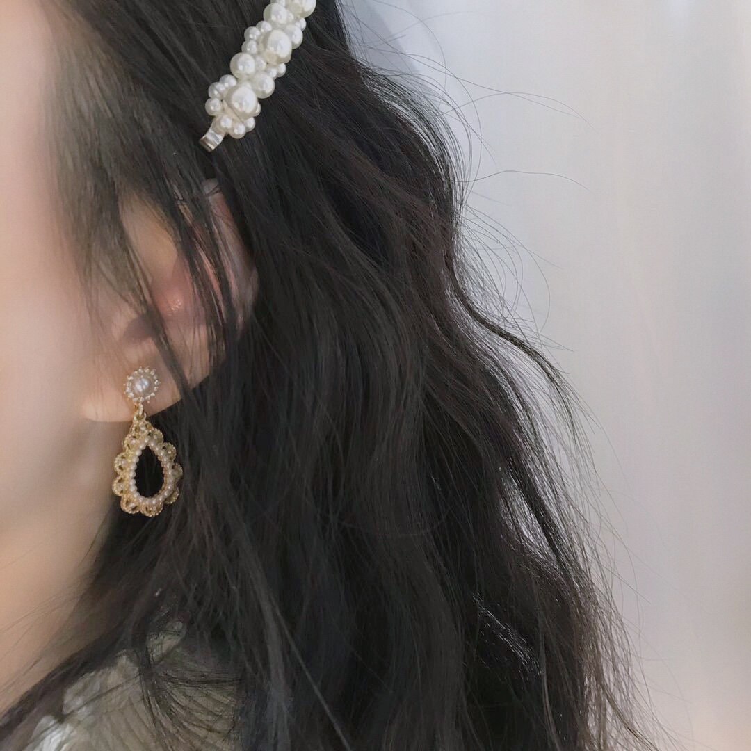 Oil painting ear clips retro high-end pearl elegant baroque ear needles palace temperament earrings without ear holes new