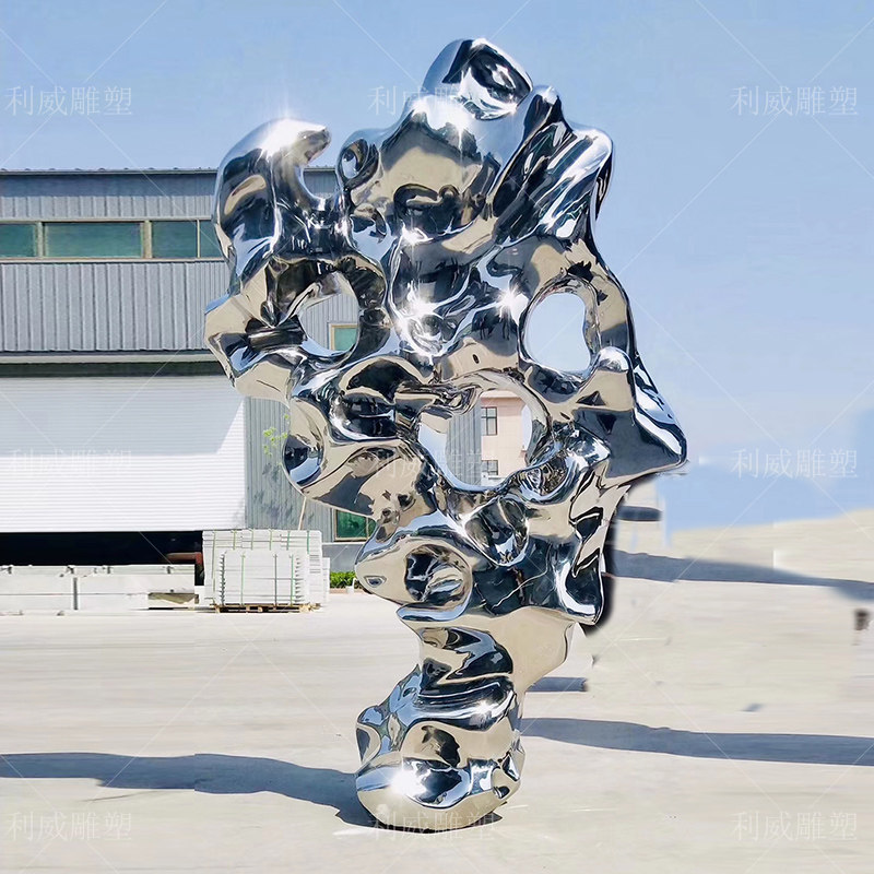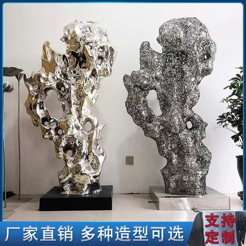 Stainless Steel Taihu Stone Sculpture Custom Large Metal Mirror Fake Mountain Abstract Indoor Stone Landscape Outdoor Pendulum-Taobao