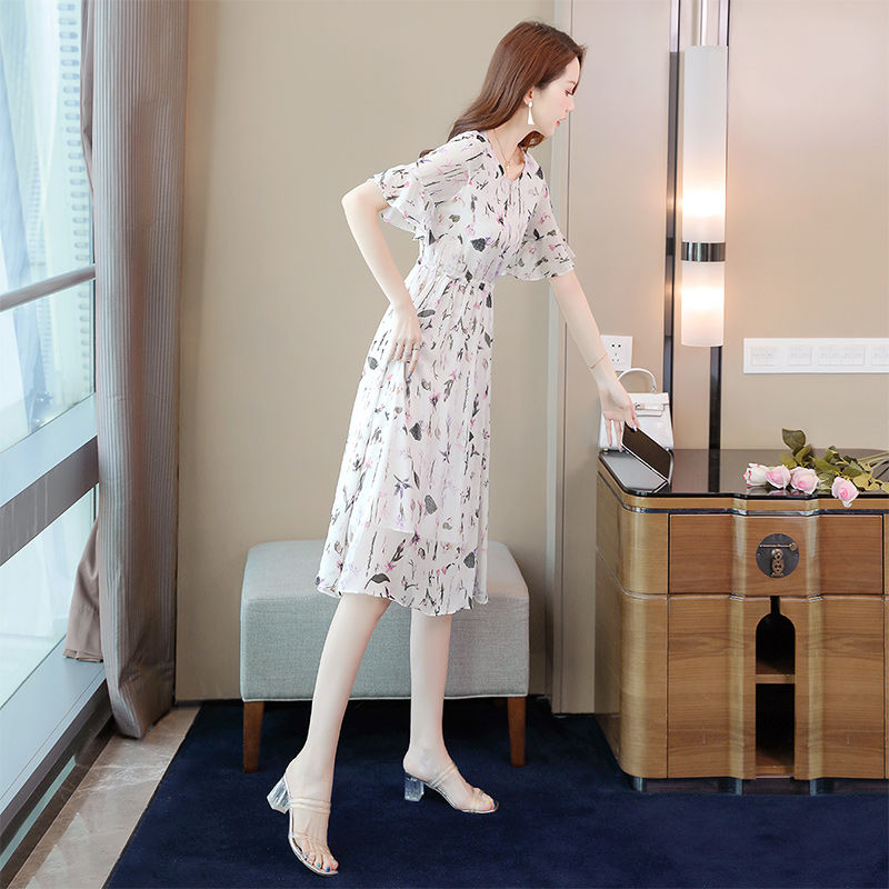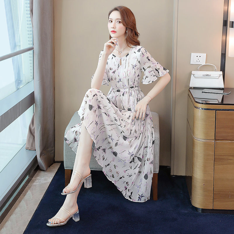 Snowspun Ocean dress 2020 new summer temperament Slim Print Fairy a long version of cashew crumbed and crushed floral dress