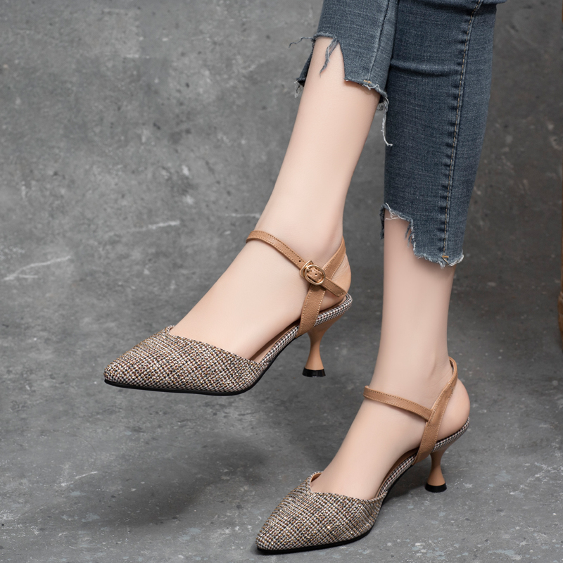 2022 new summer stiletto fashion sandals women Baotou one word buckle pointed toe high heels all-match small heel single shoes women