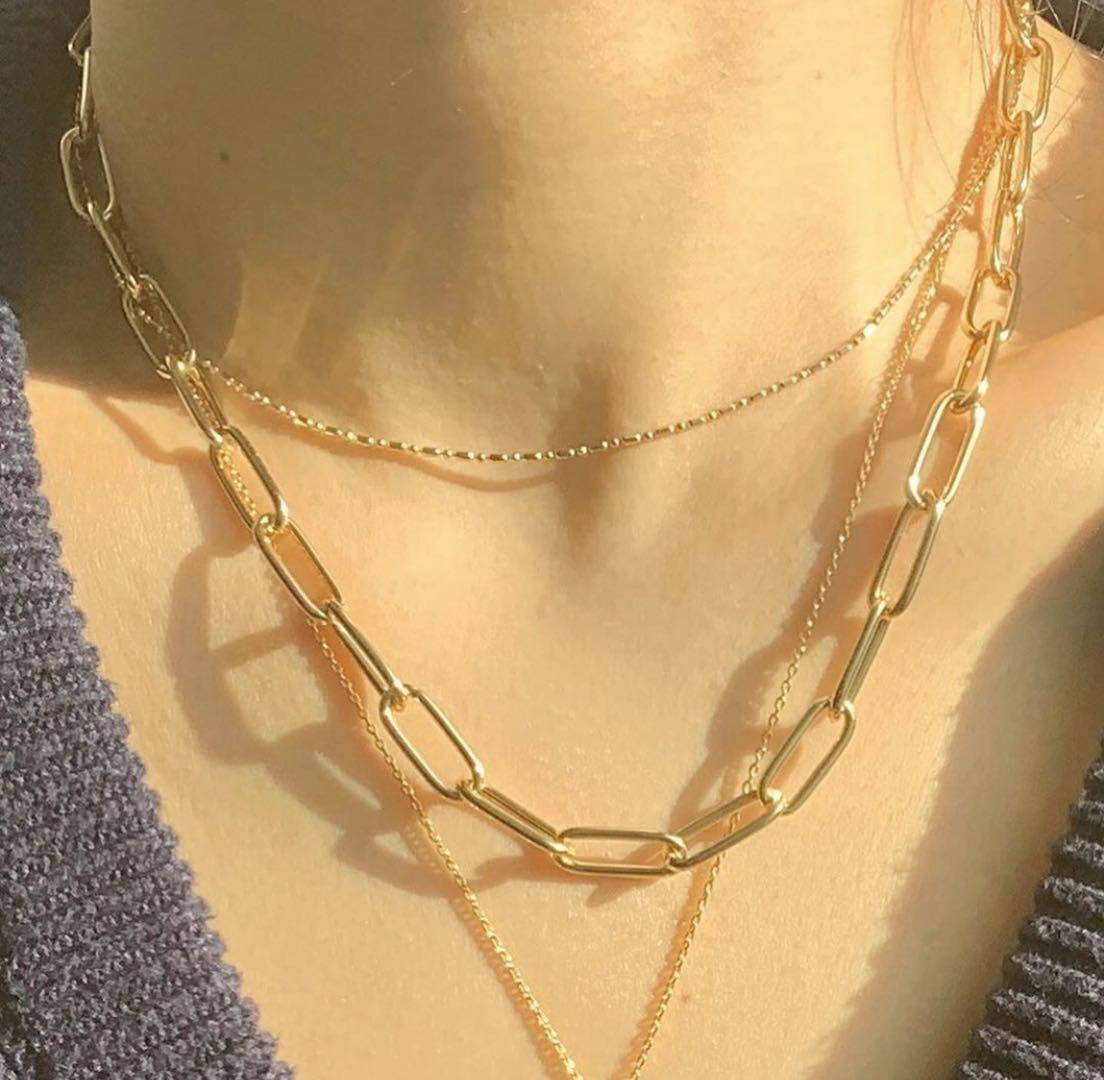 On the way justlover Korea lisa with the same chain chain with superimposed necklace set green you 2 pink ink