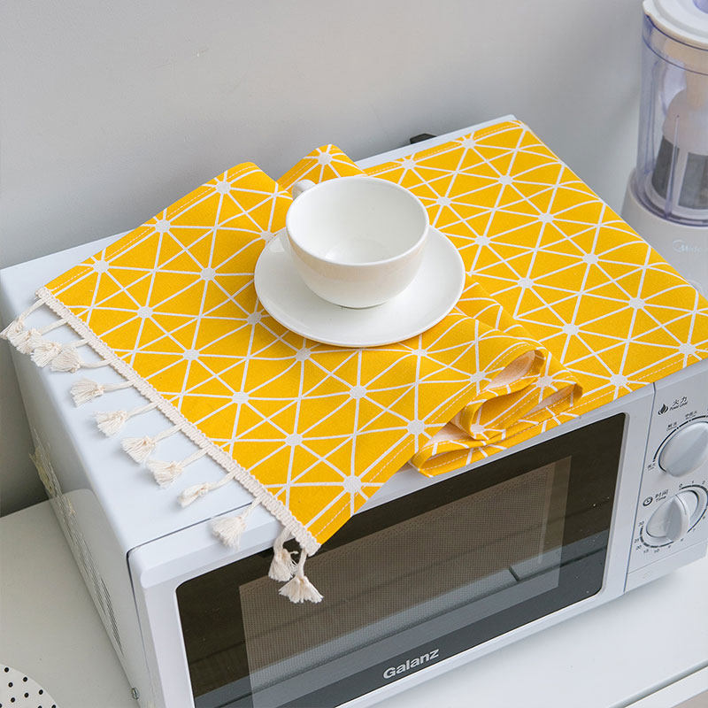 Microwave oven dust cover fabric cotton hemp breathable oven electric stove oil-proof universal universal kitchen household cover cloth cover towel