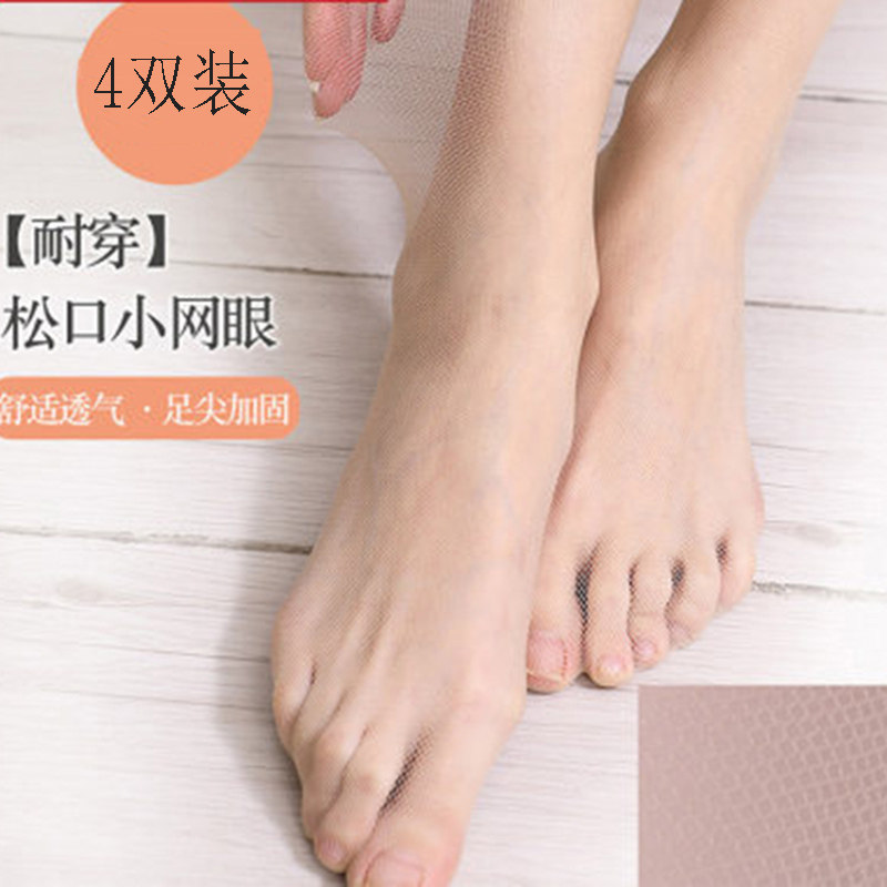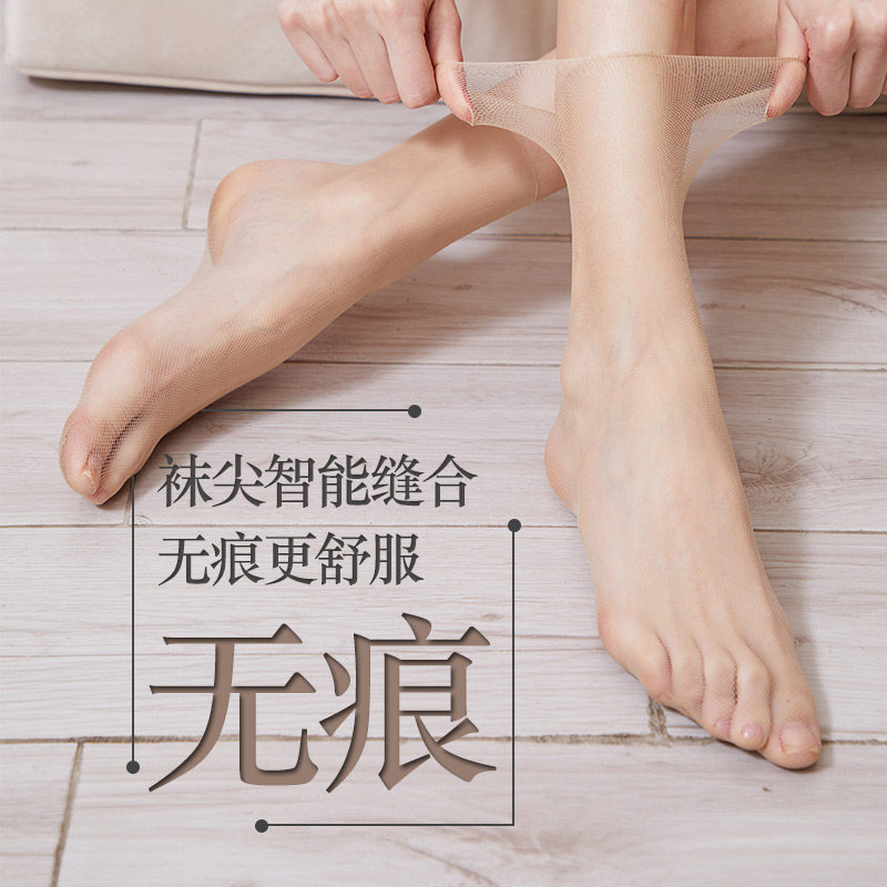 Meat-coloured silk stockings Women ultra-thin short socks 4 strips of summer foot tips transparent and unscarred invisible abrasion-proof and anti-seduces black crystal