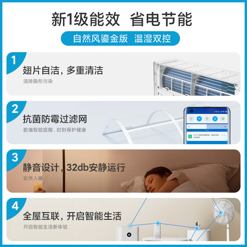 Xiaomi Air Conditioner 2 HP Inverter Gold Model New Level Energy Efficiency Home Quiet Cooling and Heating Wall-mounted Air Conditioner 50GW D1A1-P1
