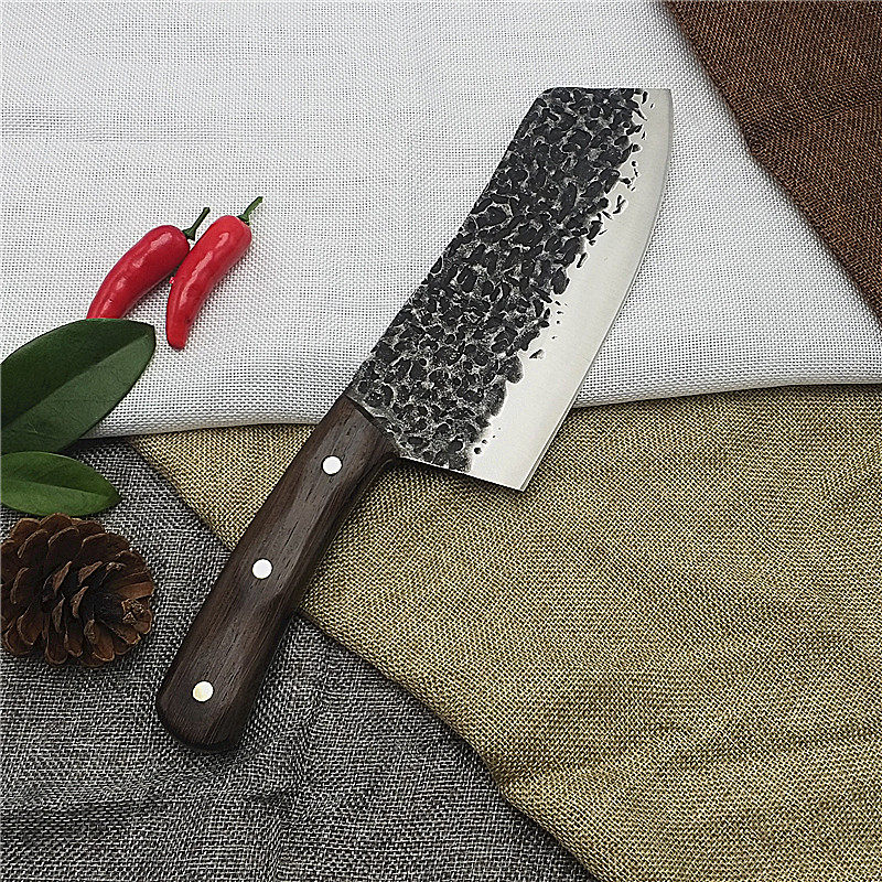 Blacksmith family hand forged hammered grain kitchen knife Stainless steel beef and mutton meat split pig hair knife Hotel household sharp knife