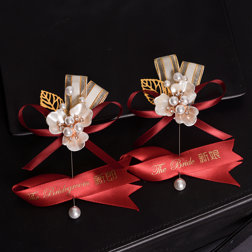 New Korean-style wedding corsage streamer note relatives title champagne wine red high-end corsage streamer