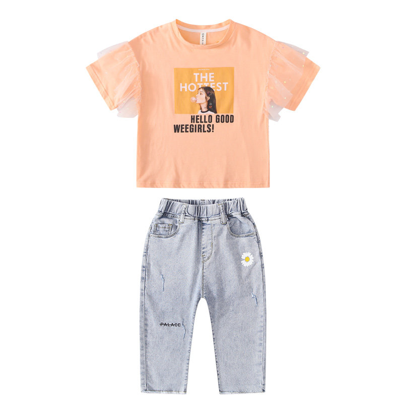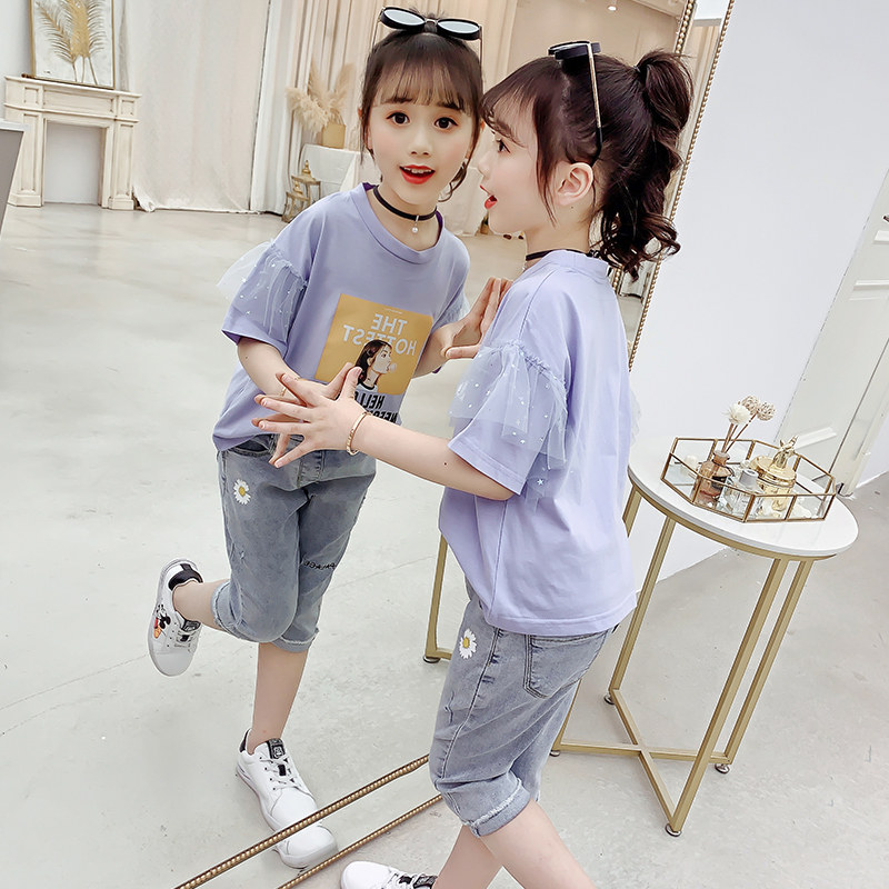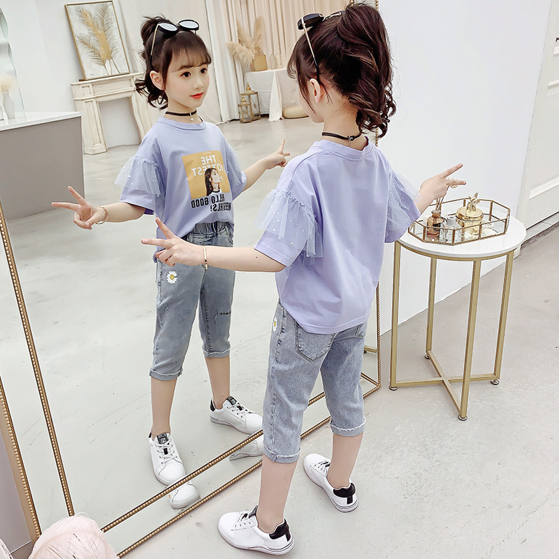 7 Girls Dress Summer Clothing 8 Suits 2022 New Korean version Tennis Red 5 Children's Yoyo 9 Girls Short sleeves Two sets 12 years old