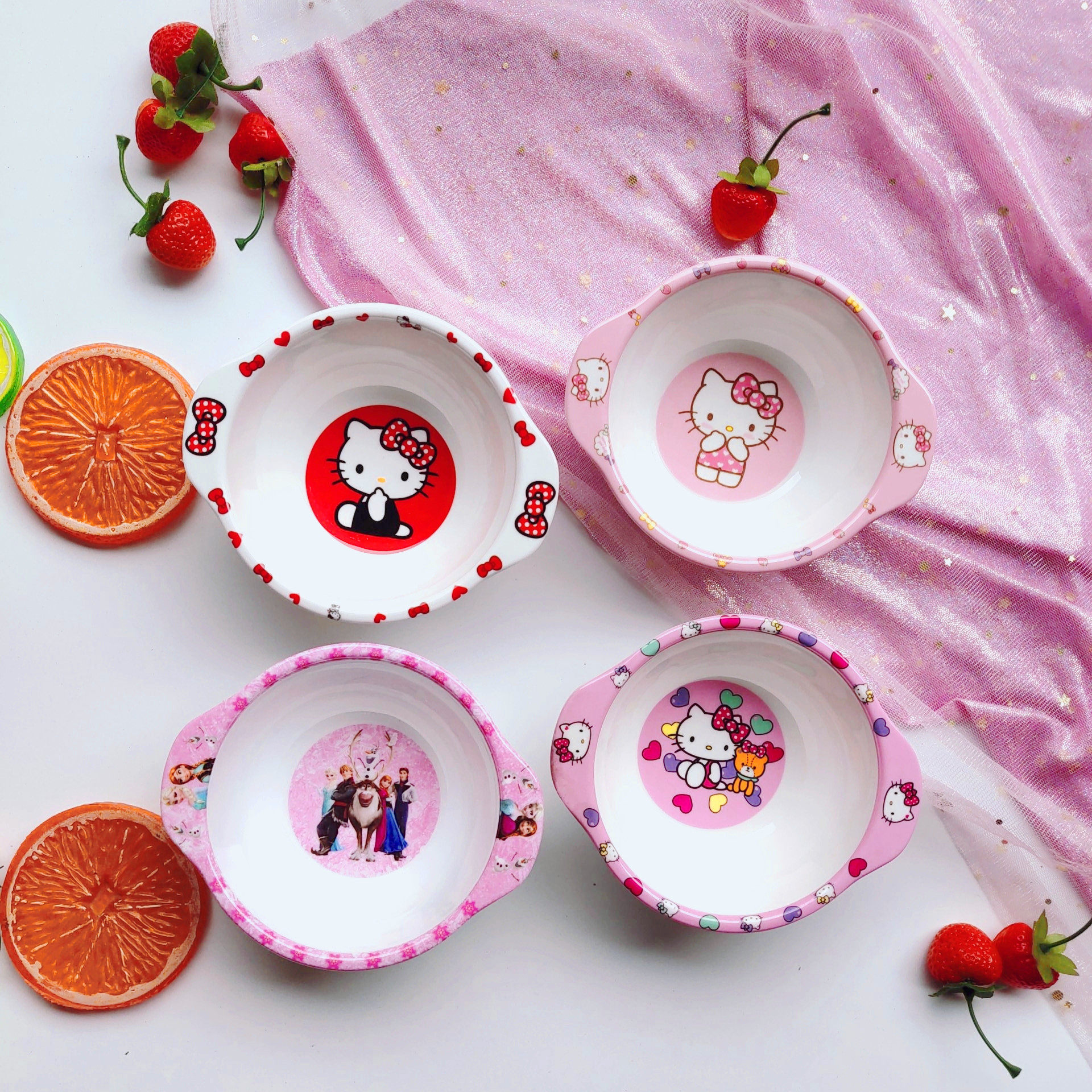 Disney binaural bowl Super Wings binaural bowl Che Wang binaural bowl Frozen binaural bowl Strawberry kt cat binaural bowl love kt cat binaural bowl red kt cat binaural bowl Jingdang cat binaural bowl powder Peppa binaural bowl