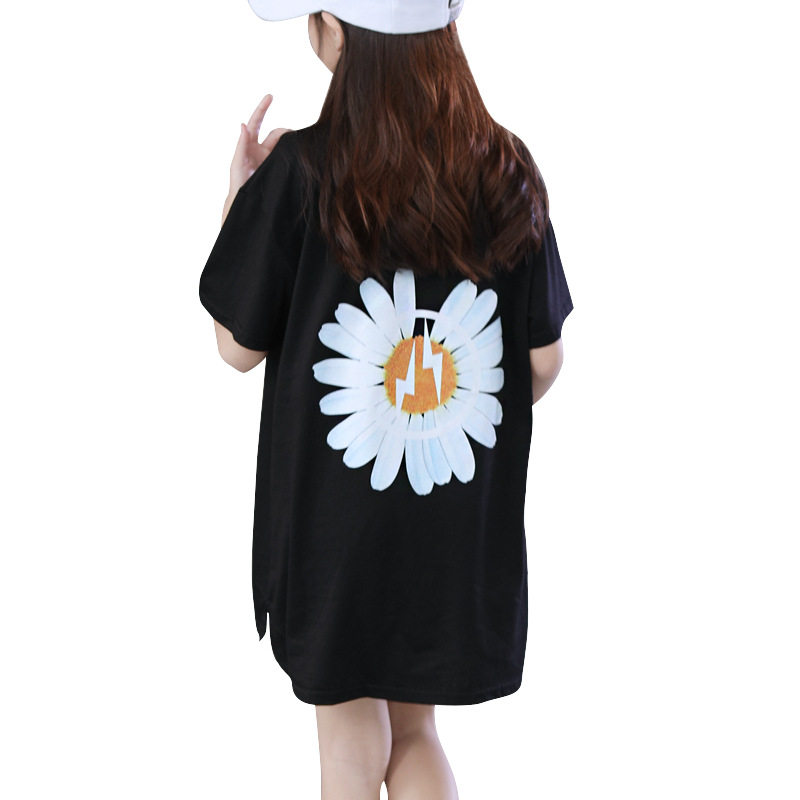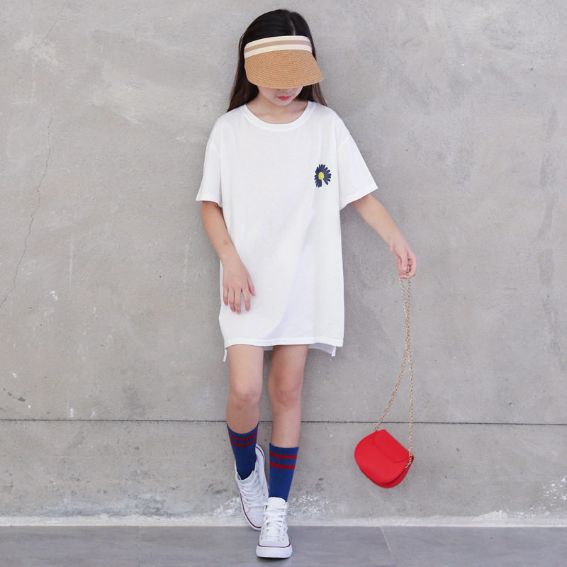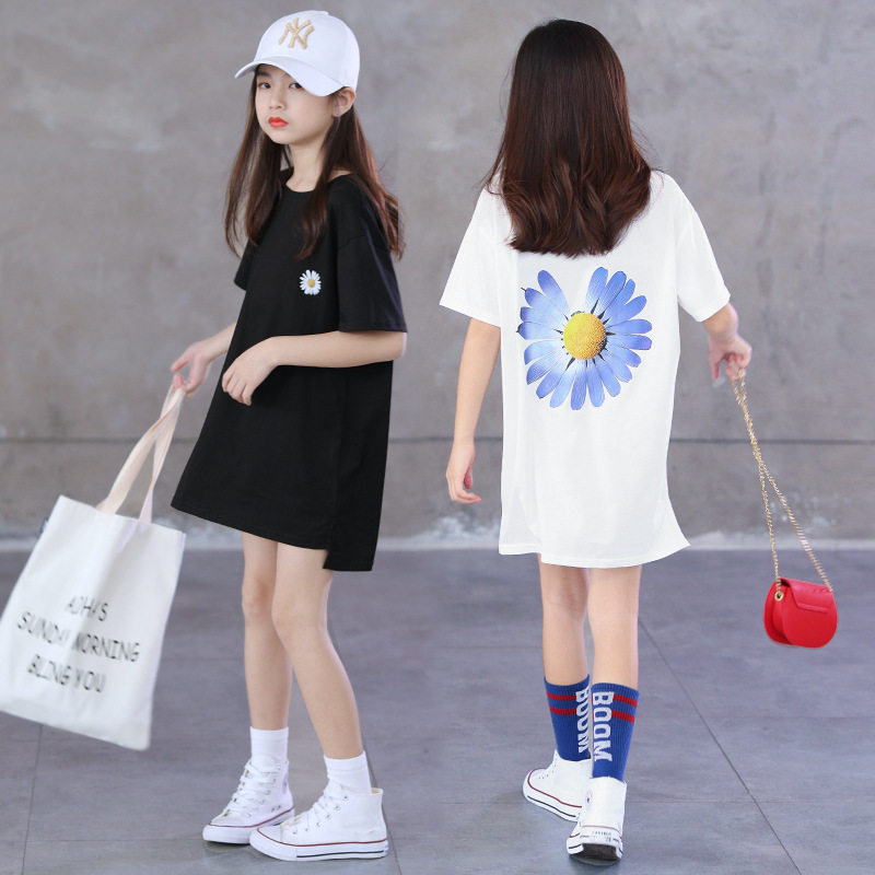 Girl Long Version Loose Short Sleeve Pure Cotton T-shirt 2020 Summer Dress New CUHK Child Chicks Pure Cotton Printed Blouse