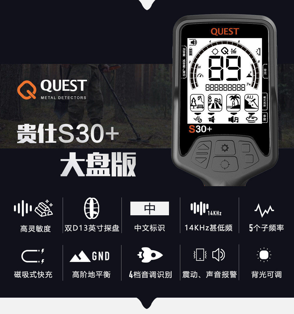 American Guishi S30 Metal Detector Underground Treasure Finder High Precision Outdoor Gold, Silver and Copper Treasure Finder