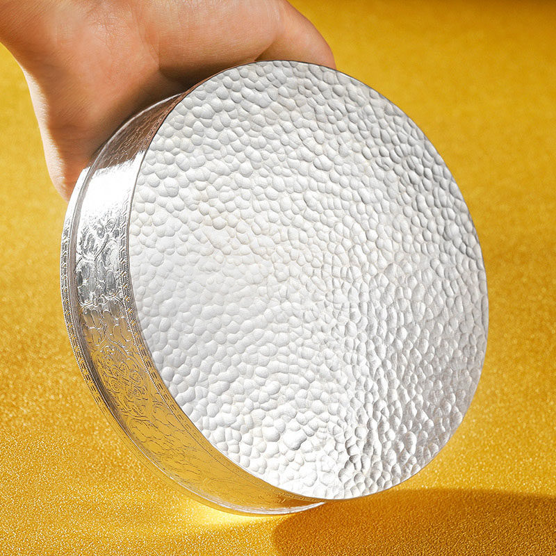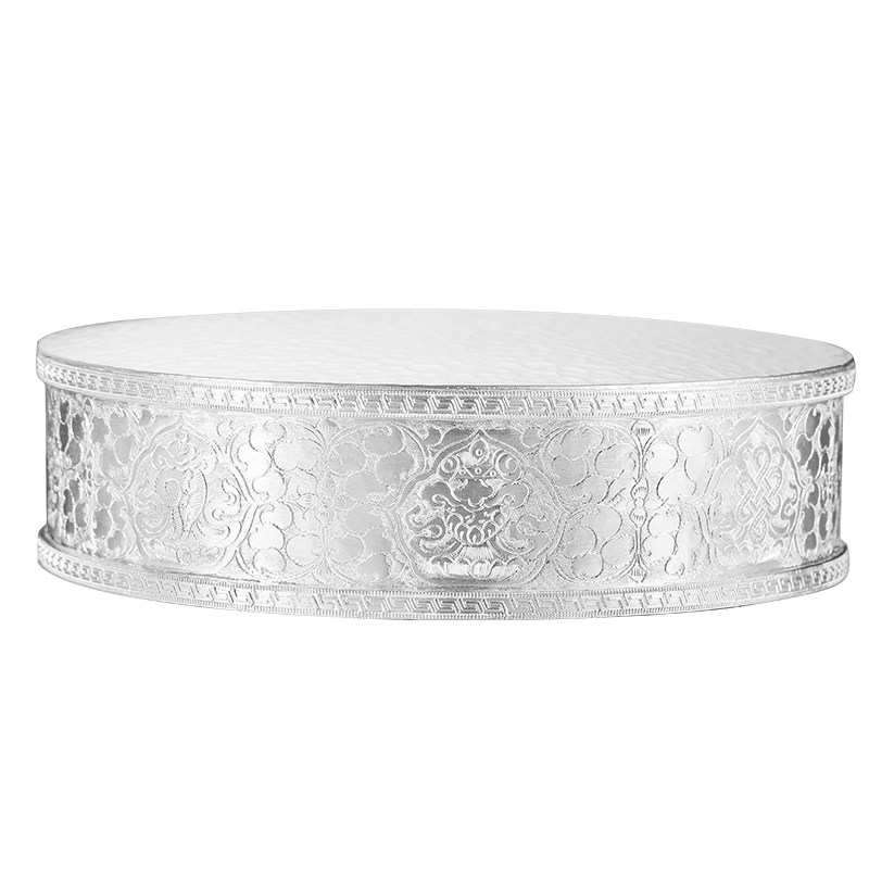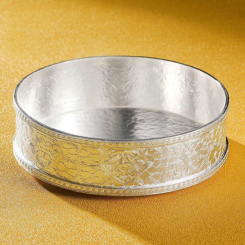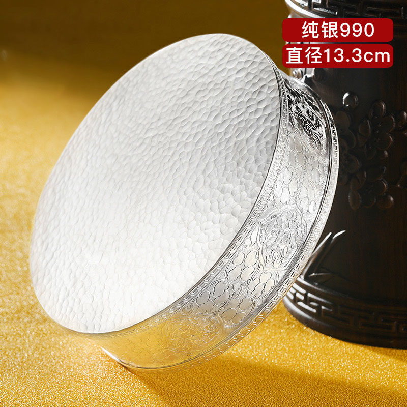 S999 Pure Silver Manza Disc Full Handmade Man Tea Romanza Repair Pan Hand Carved 8 auspicious large number 13 3cm
