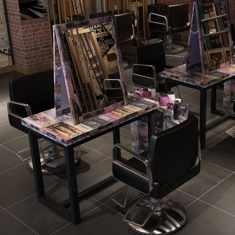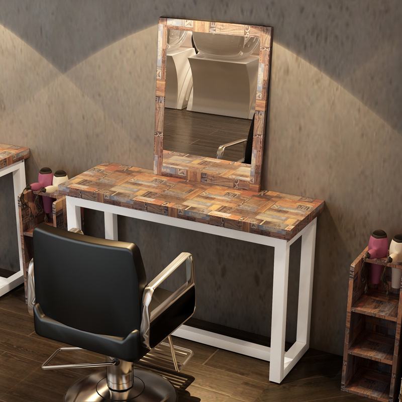 Hairdressingery Mirror Subnetting Red Beauty Hairdressing single-sided floor hardwood mirror table cupboard One body hair salon special