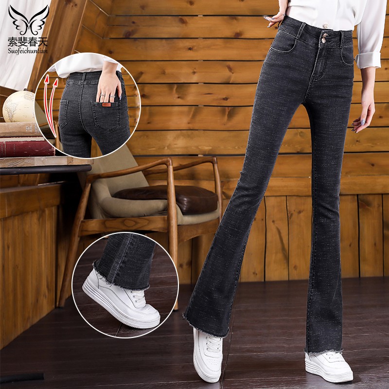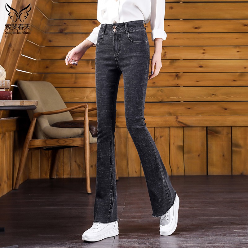 Micro-la jeans women 2021 spring models raw edge drooping high-waisted trousers stretch breasted thin flared pants women's pants