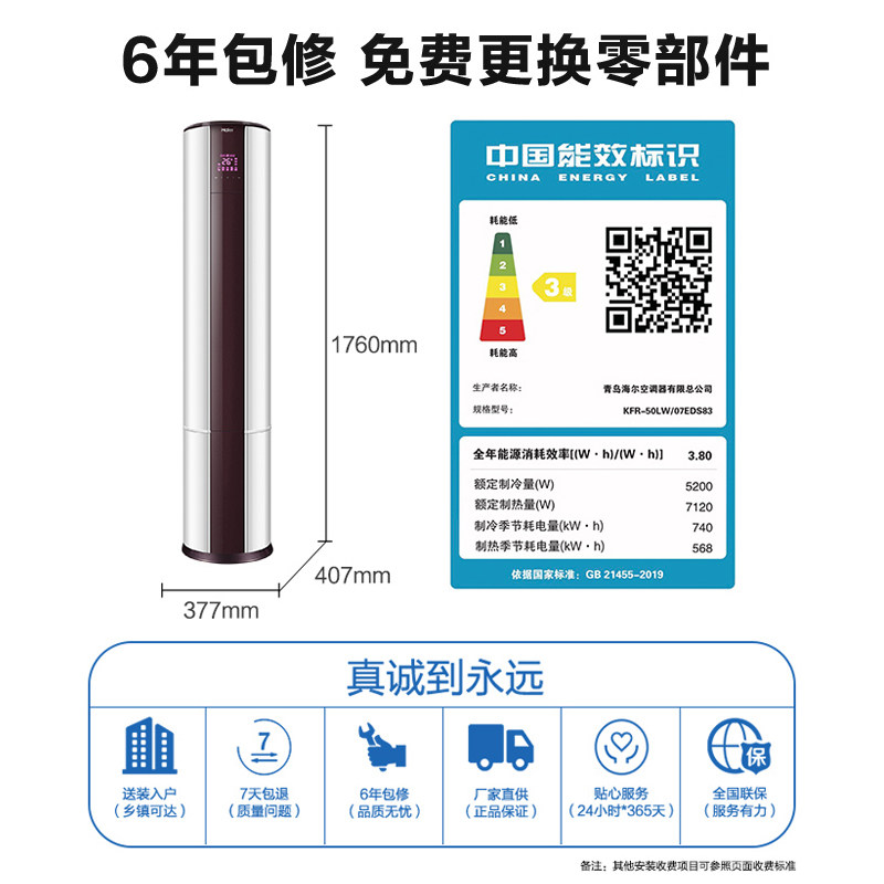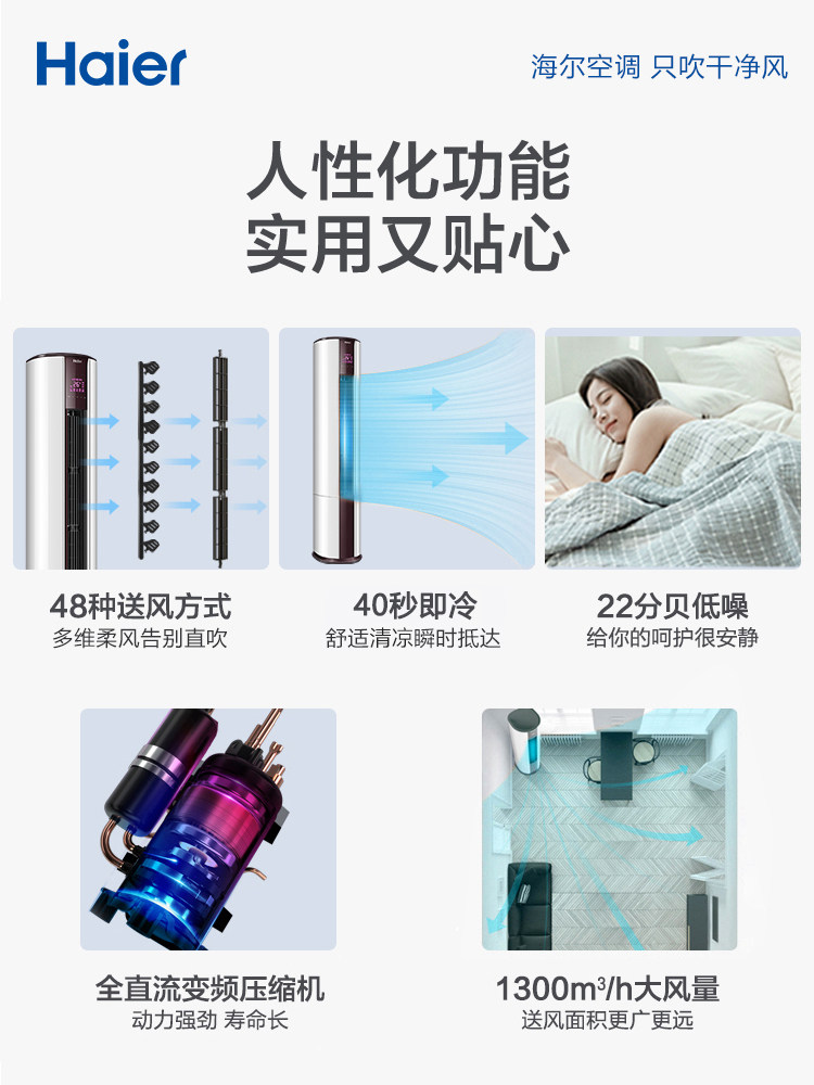 Haier 2-horse inverter vertical air conditioning cabinet living room home heating and cooling flagship store 50EDS83