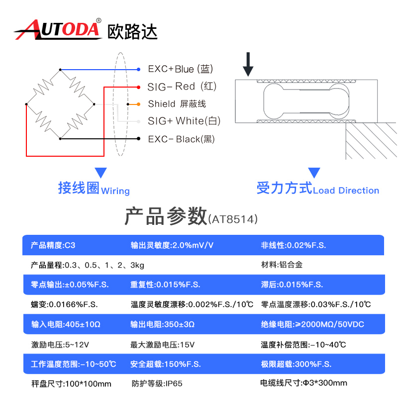 Euroda AT8514 High Precision Single Point Weighing Sensor Pressure Module Aluminum Tian Scales 300g 3kg