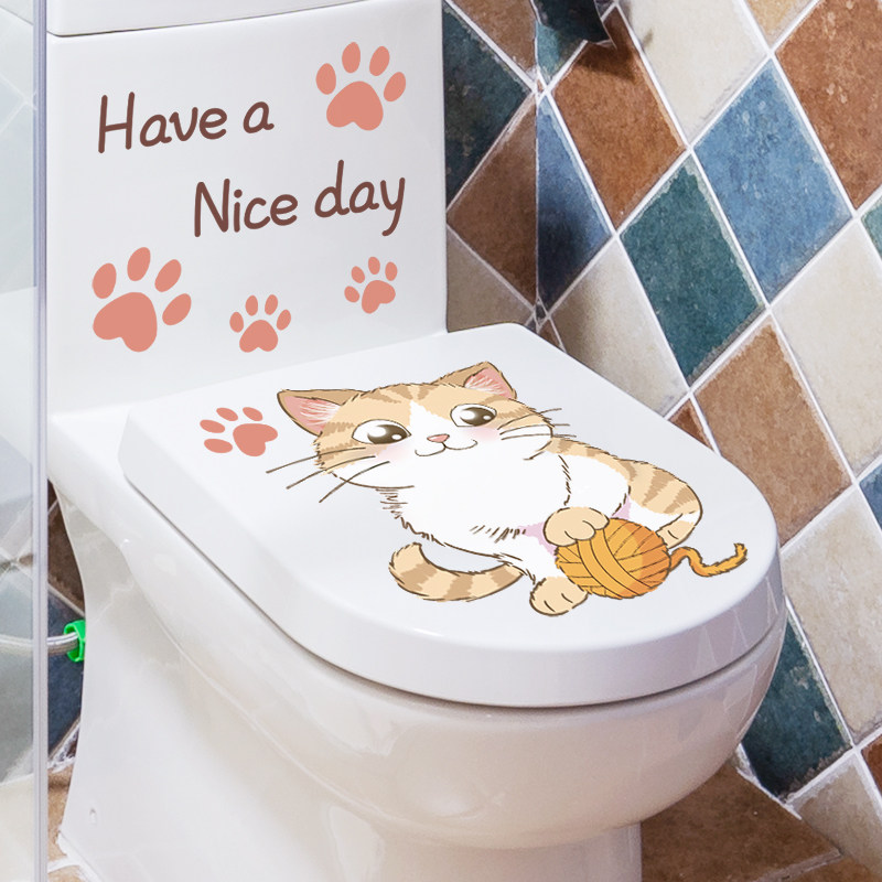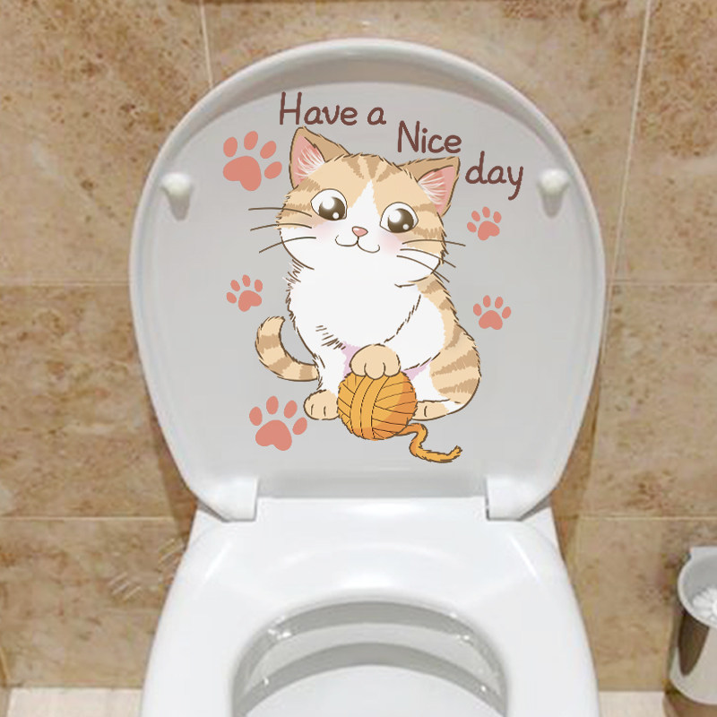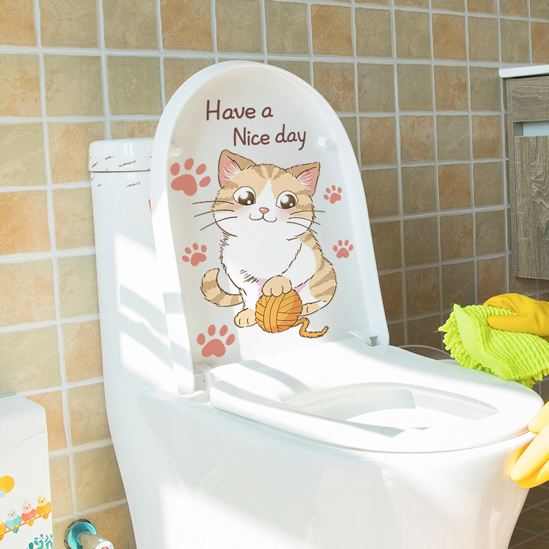 Kitty Kitty Creative Toilet sticker 3d Cubic toilet lid funny sticker Makeup Room Water Tank Waterproof Sticker