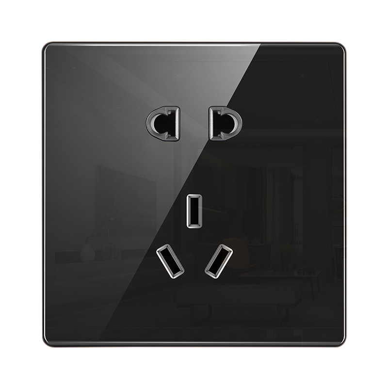International Electrician 86 Type Concealed Hole Socket Home Wall Type Acrylic Black Glass Face Five-Eye Socket Panel