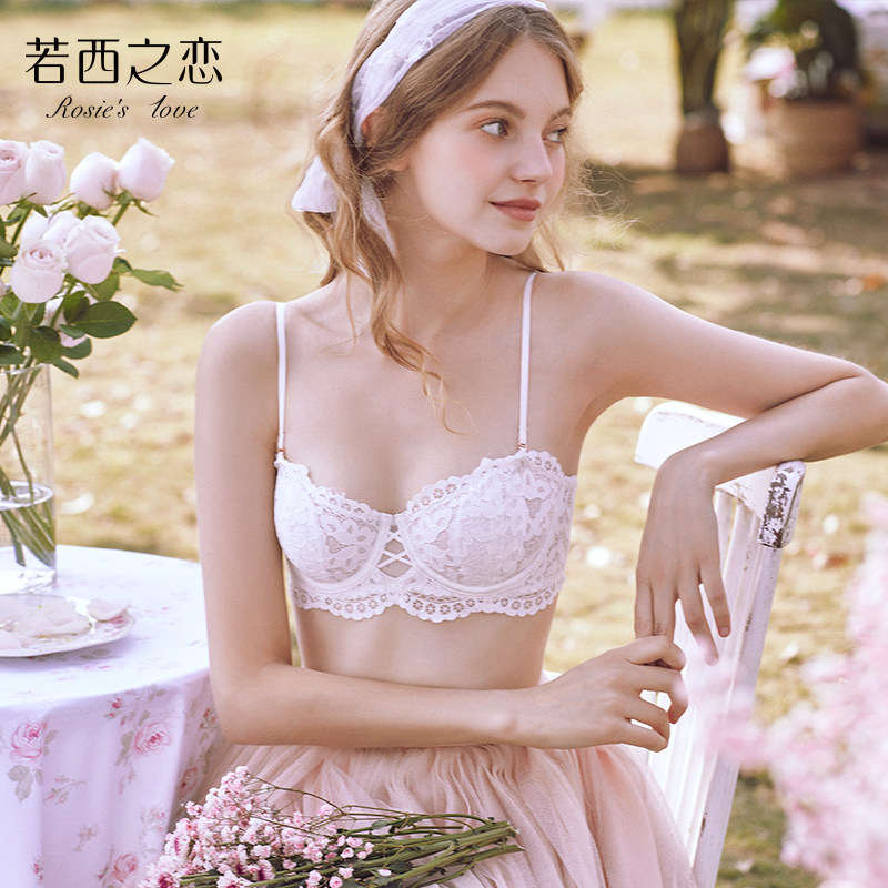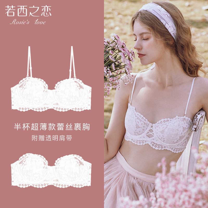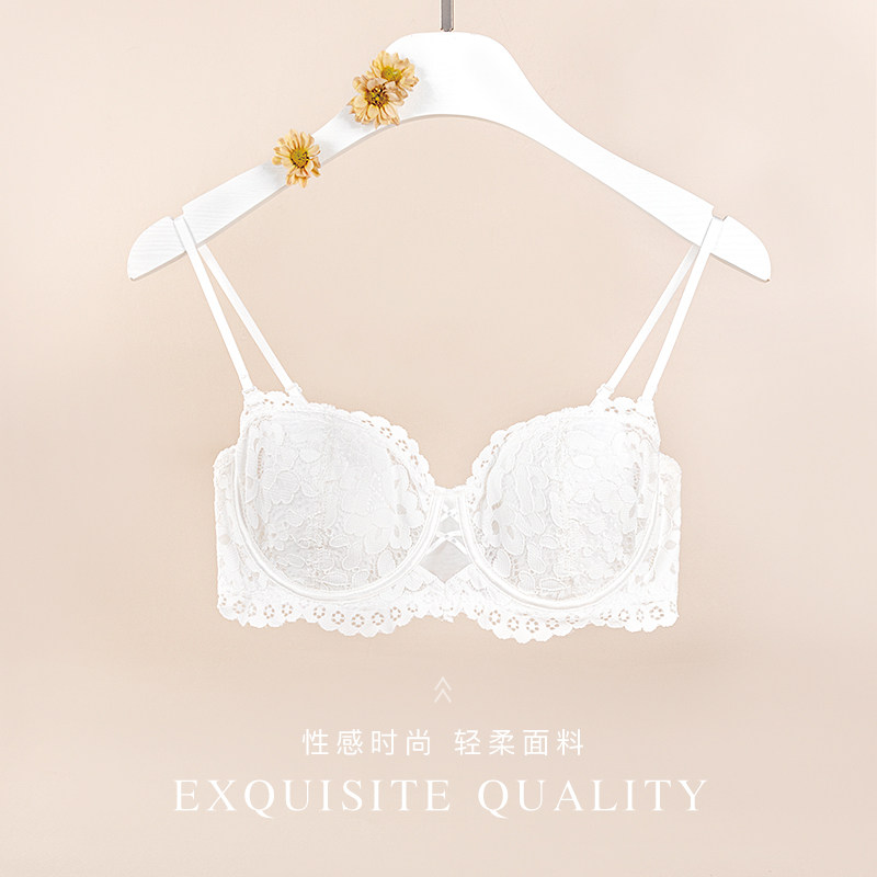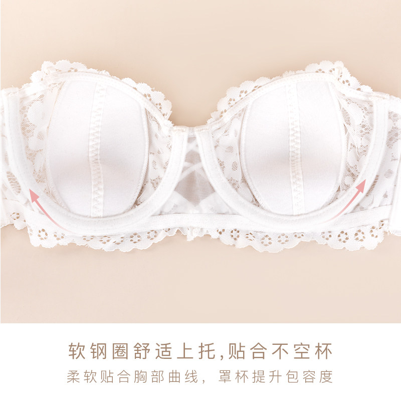 Lingerie women's breasts big small breasts slim lace pure sexy sexy half cup gathered strapless bra set