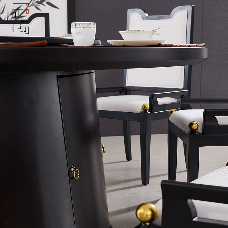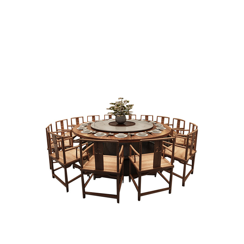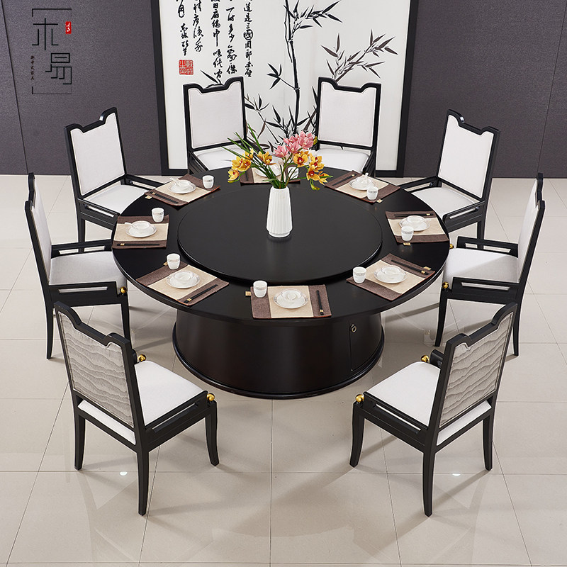 New Chinese electric dining table and chairs Modern hotel clubhouse homestay private room restaurant light luxury solid wood large round table customization