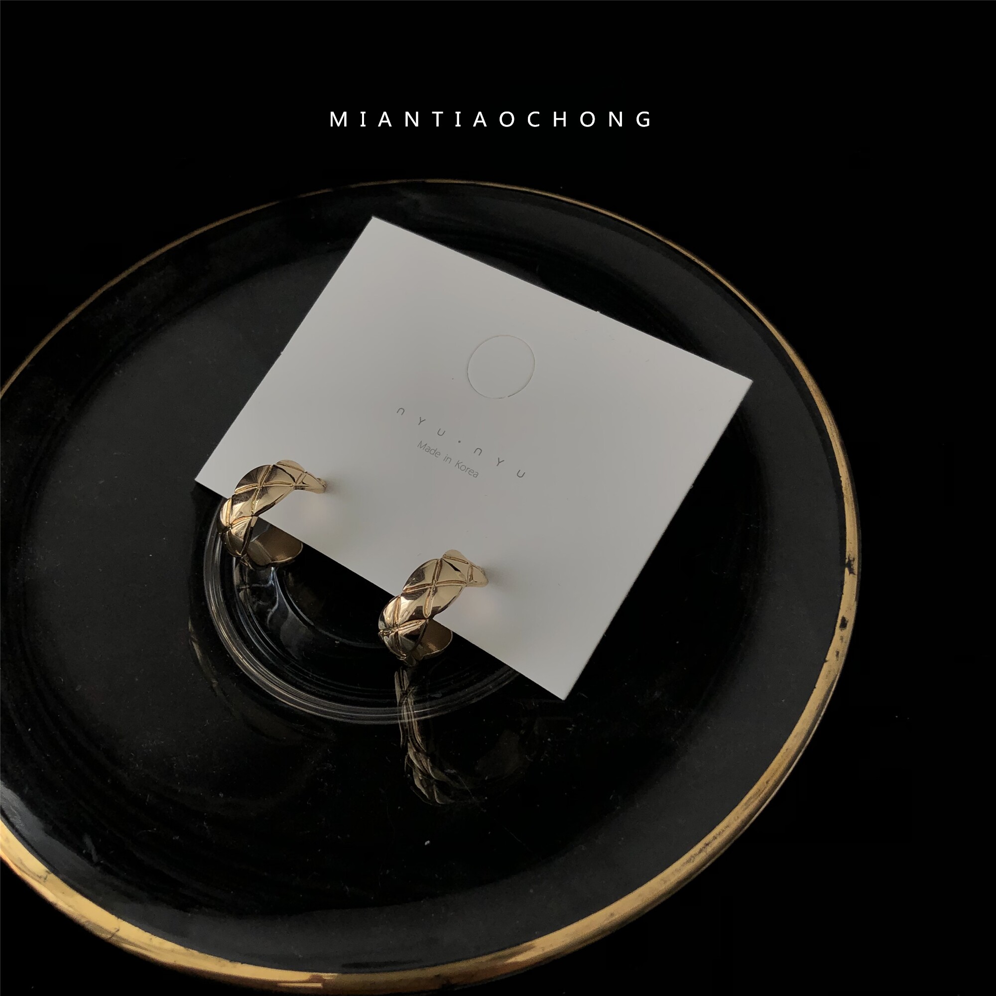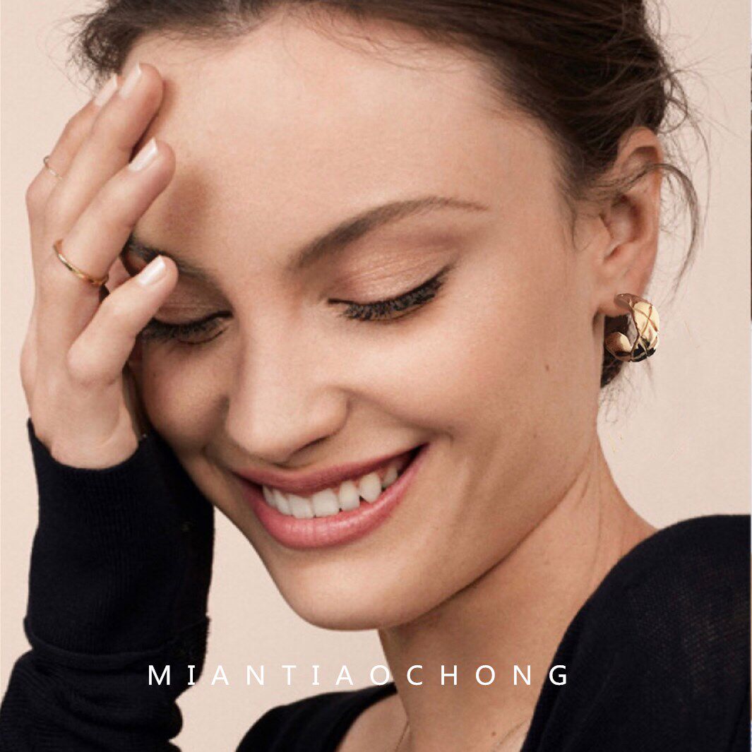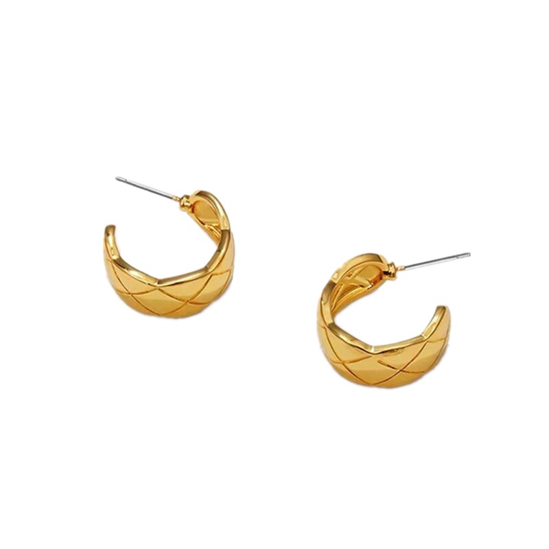 Cotton worm retro ins rhombic retro sense ring metal high-grade texture 925 sterling silver needle earrings female ear clip