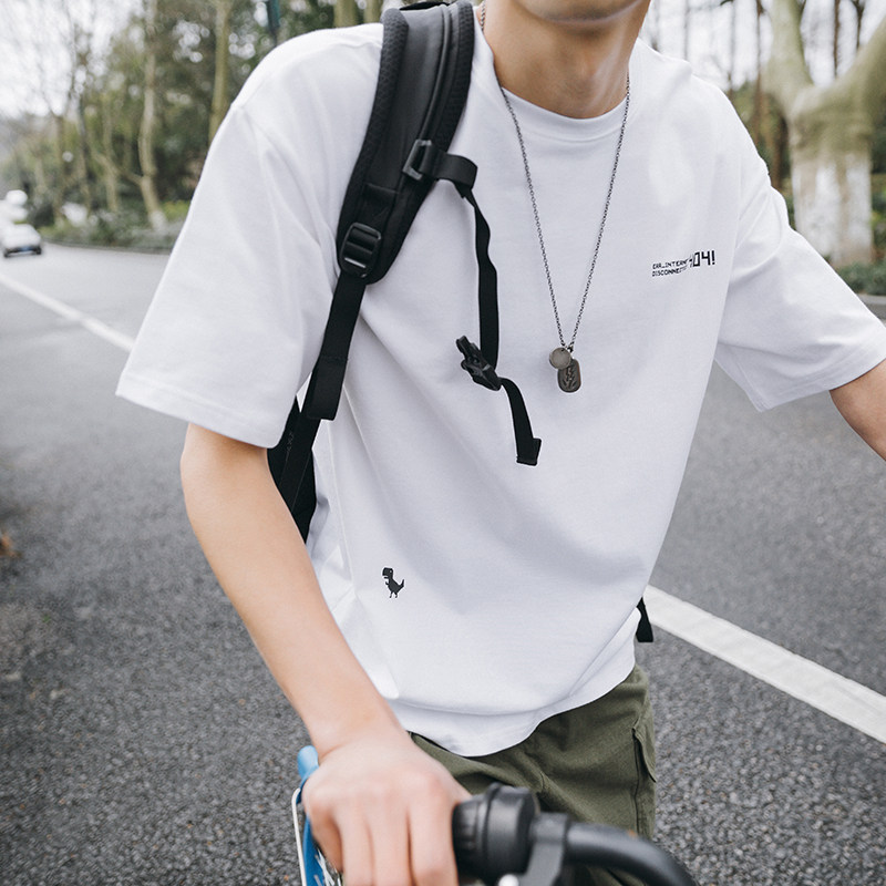 Lü Xiaohu Summer Dinosaur Creative Printed Short Sleeve Male Trend Brief pure color T-shirt for men's loose undershirt tide