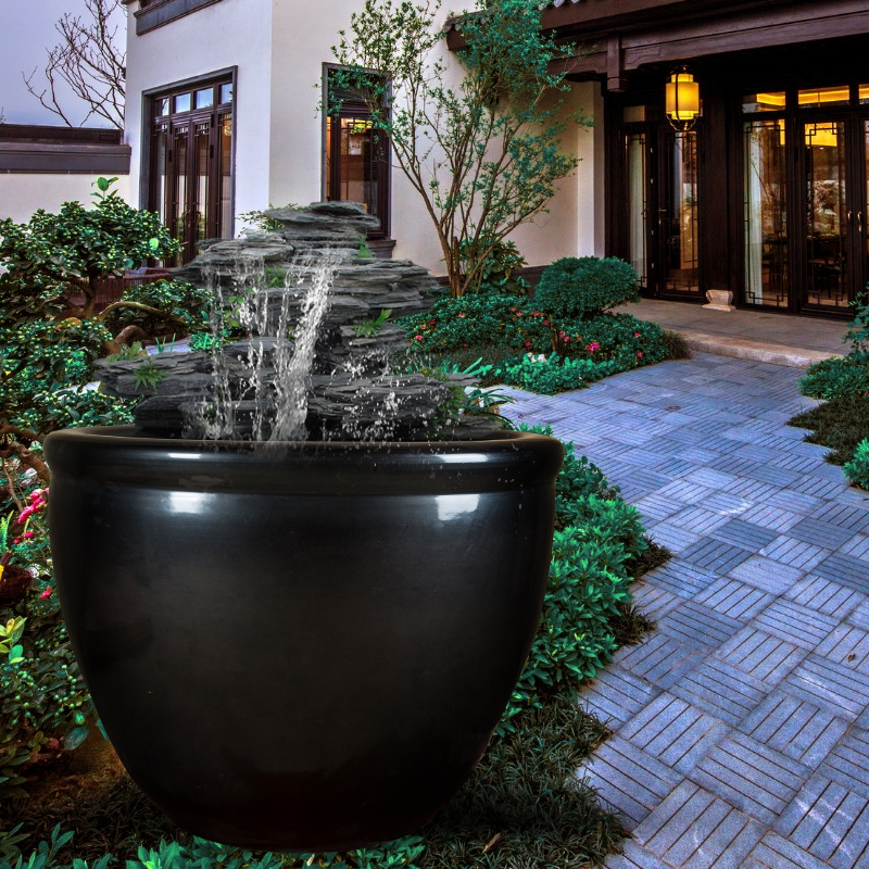 Imitation antique Jingdezhen Ceramic fish tank fish farming outdoor lotus cylinders Sleeping Lotus Cylinders Golden Fish Tank Patio Old Water Cylinder Pendulum