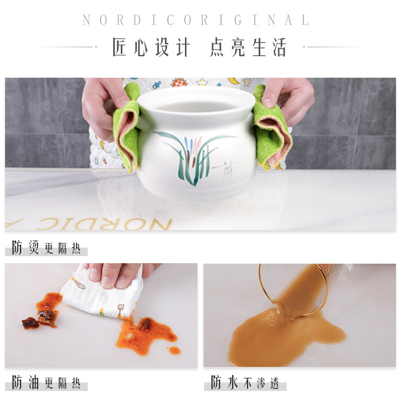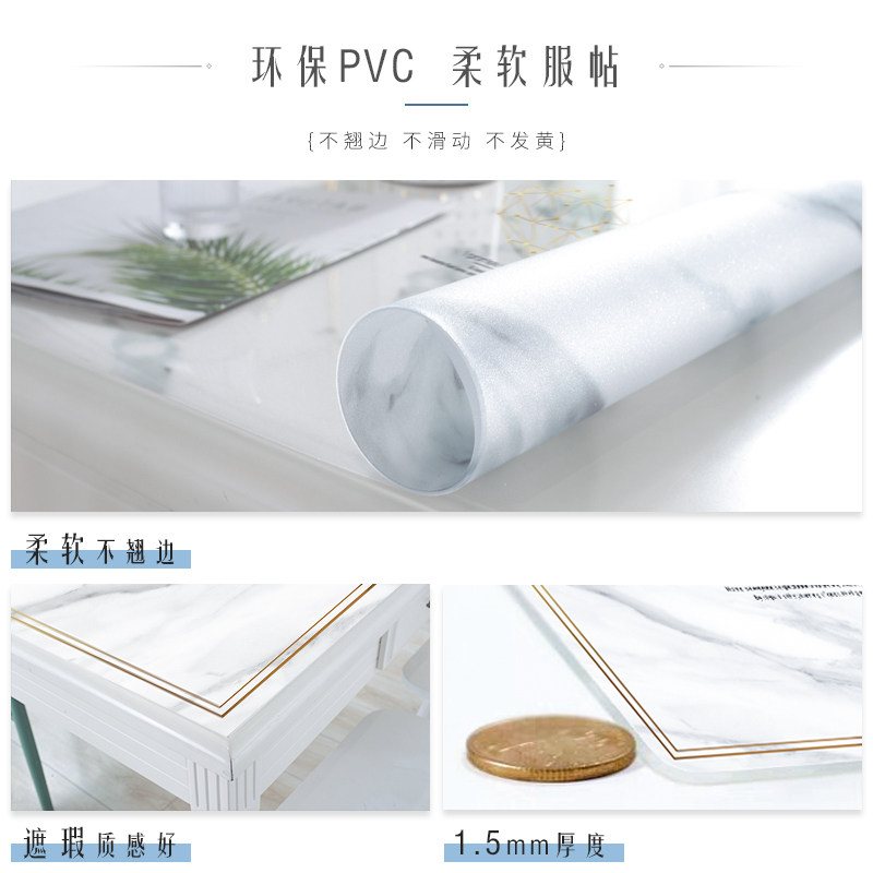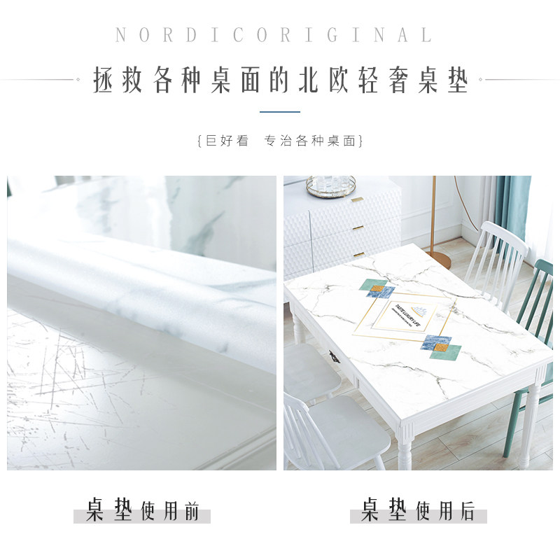 Nordic table mat tea table mat table cloth waterproof anti-oil washable marble printed pvc soft glass anti-burn