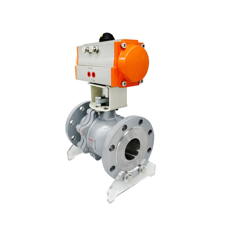 Pneumatic cast steel flange ball valve Q641F-16 DN50-DN200AT actuator abrasion resistant and durable