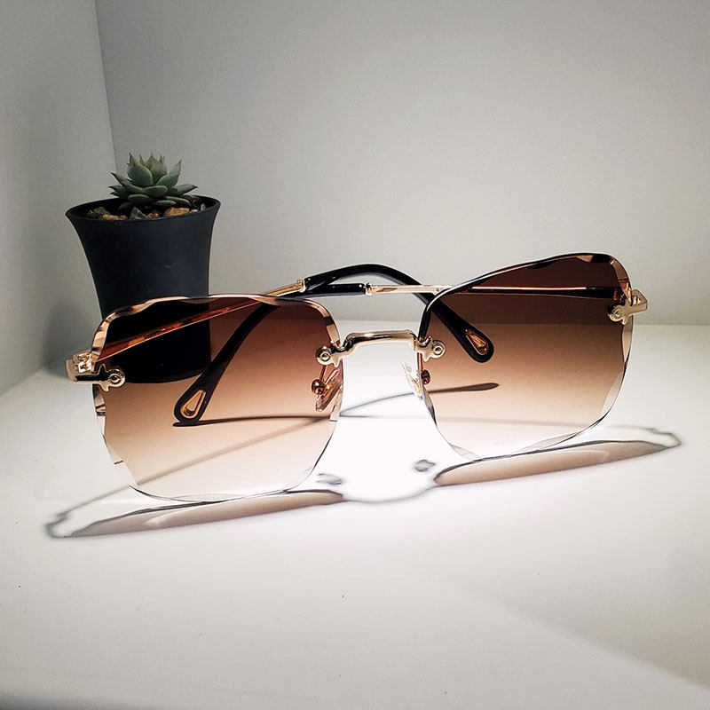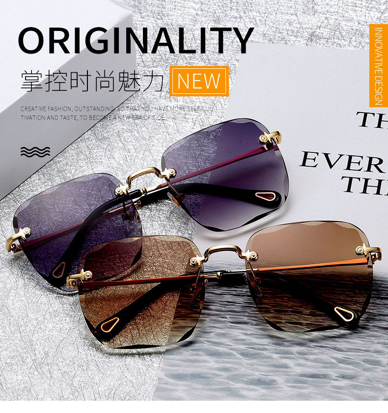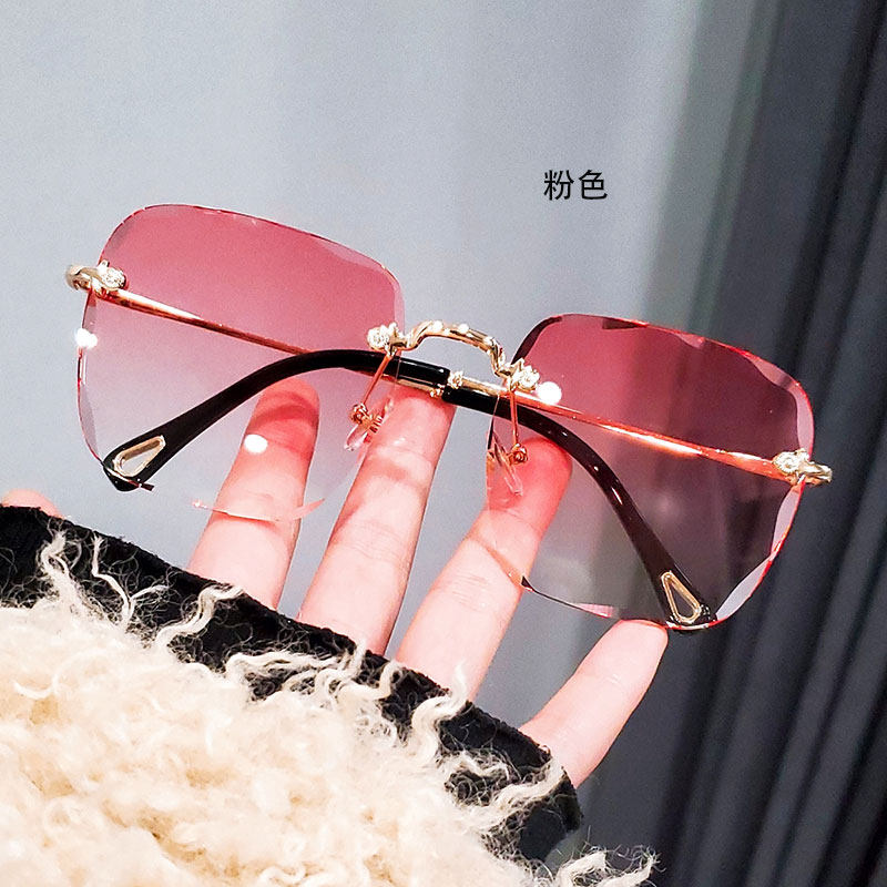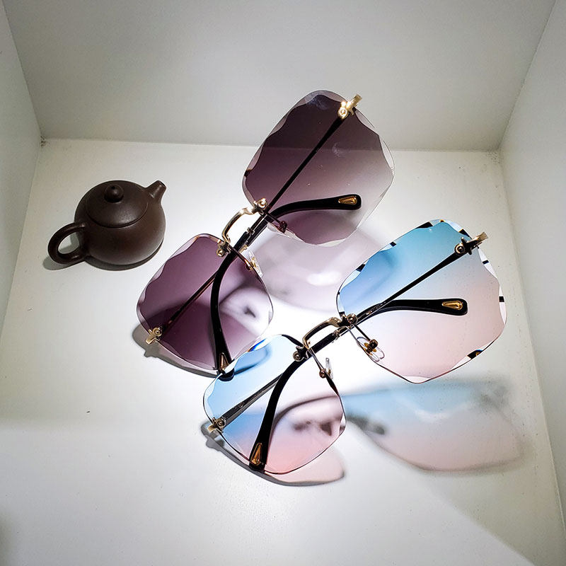 Sunglasses 2020 new fashion women's big frame square frameless fashion simple personality gradient color sunglasses anti-UV