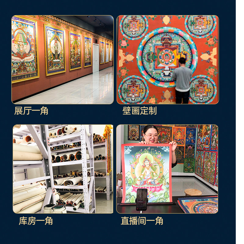 Sheng Tang Gate hand-painted Thangka custom link Yellow God of Wealth Green Tara Guanyin Buddha Statue Hanging Painting Living Room Decoration Painting