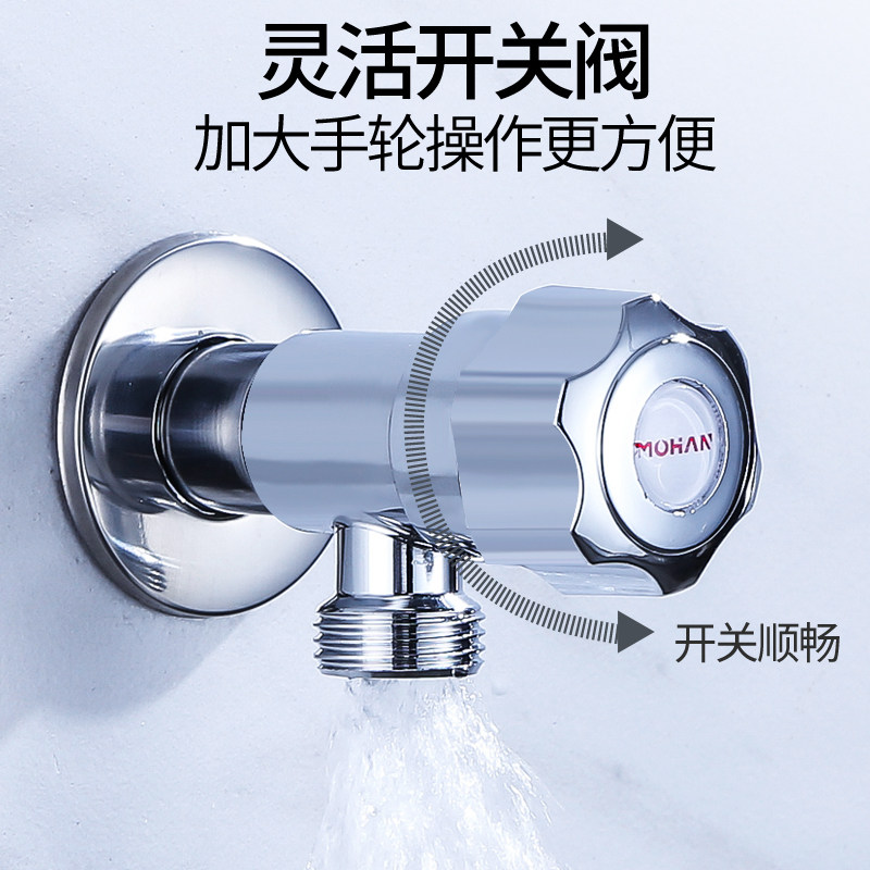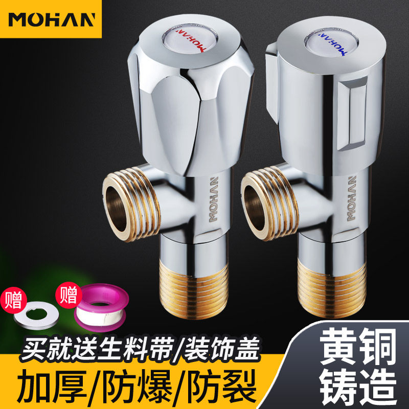 Brass triangle valve thickened hot and cold water valve switch 304 stainless steel water heater 4-point water inlet household water stop valve