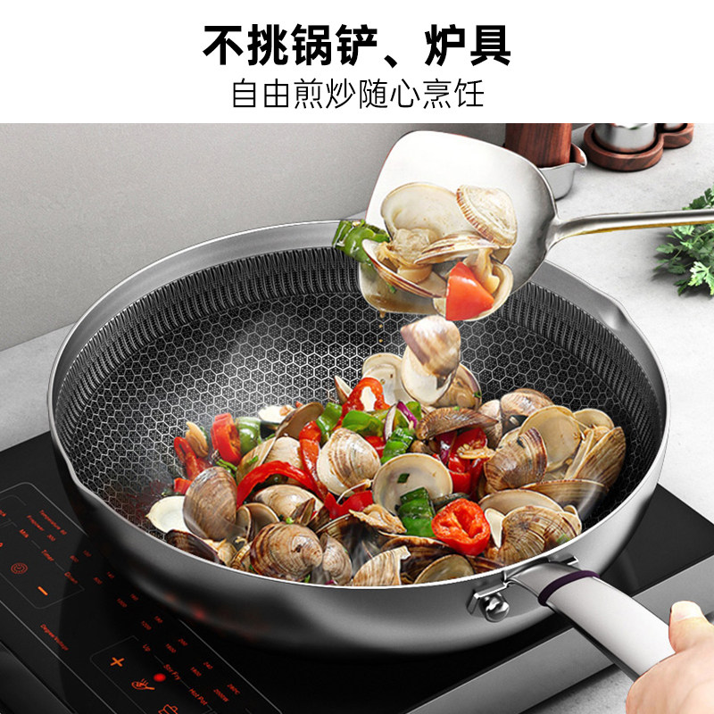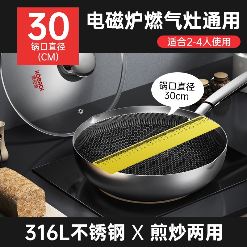 Combach 30cm Wok 316L Stainless Steel Frying Pan Household Stir-Fry Gas Stove Induction Cooker Universal Wok