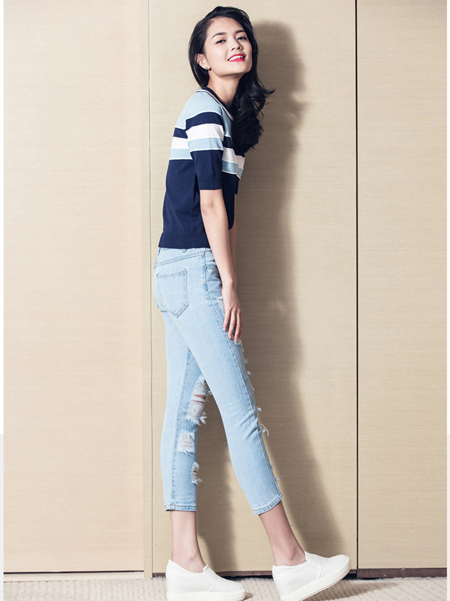 Blue and white "Tmall preferred goods" (women's sweater knitwear top loose lazy sweater Women's knitted top women's base sweater V-neck sweater top women's autumn and winter) (wool