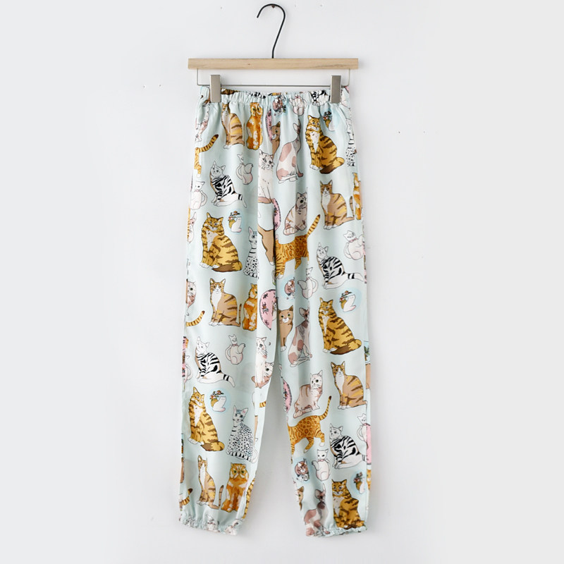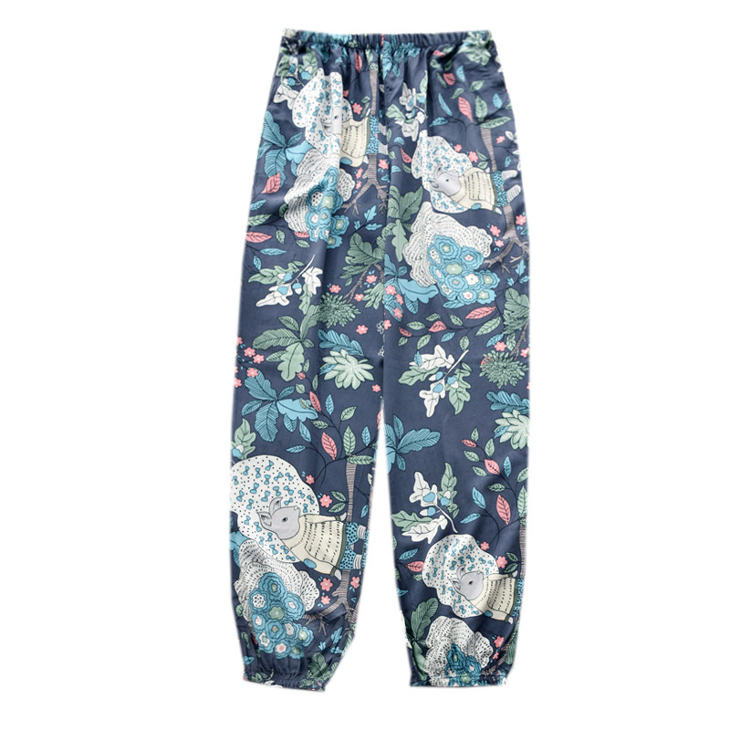 Artificial Cotton Printed Nordic Wind Close-up Sleeping Pants Woman Summer cotton thin section Loose Anti-mosquito Pants Long Pants Home Pants