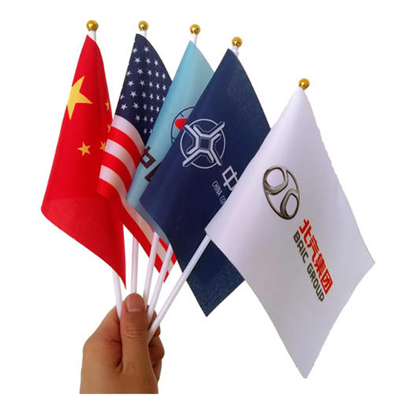 Hand flag small flag set to advertise custom Inlogo print logo Anniversary Live Hands Waving Small Red Flag Five Colorful Flags with pole