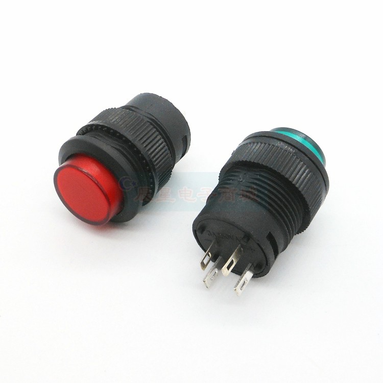 R16-503 self-locking round button switch with light and no lock 16mm signal indicator light 5 12 24 220V