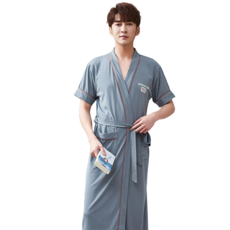 Sleeping Robe Men's Summer All Cotton Thin sexy bathrobe short sleeves Summer men's day style pure cotton kimono and medium long version pyjamas