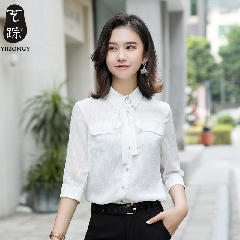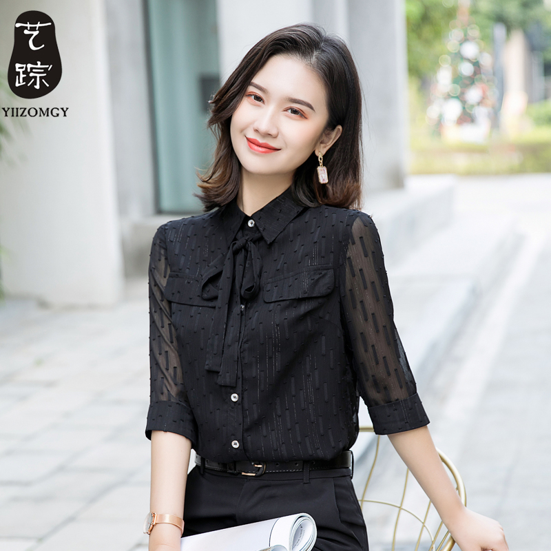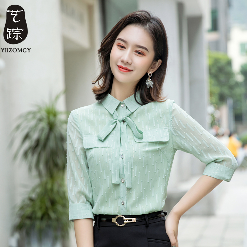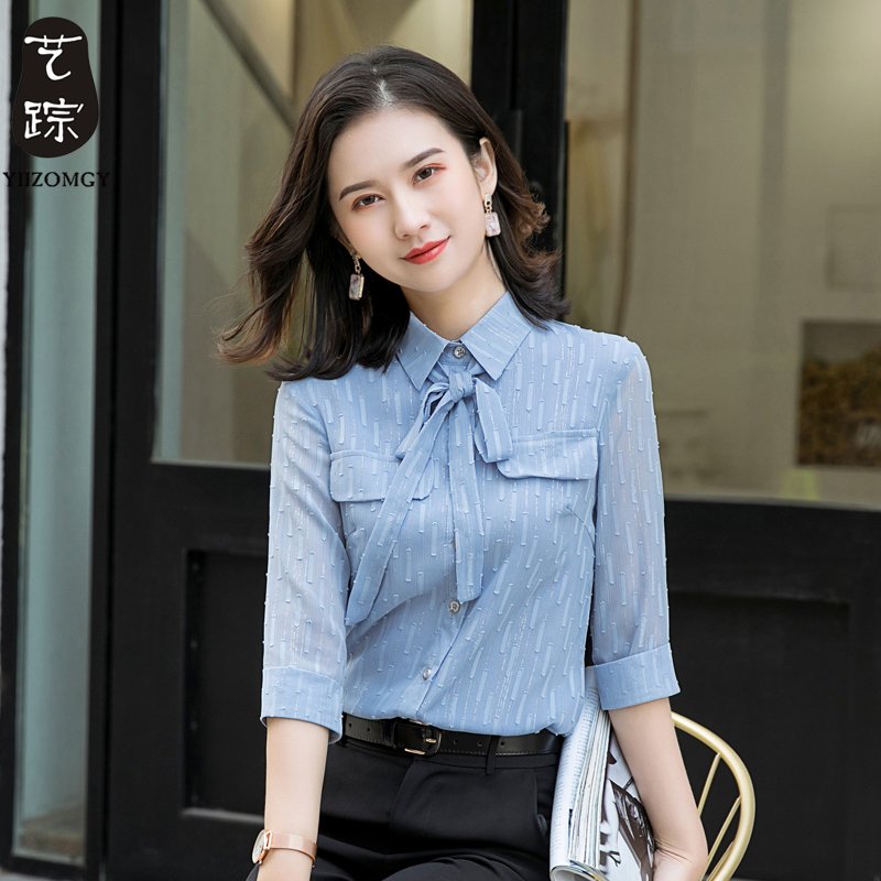 Shirt woman 70%-sleeve loose 2020 Summer new design Feel Temperament Mid Sleeve Snowspun Professional Shirt Woman