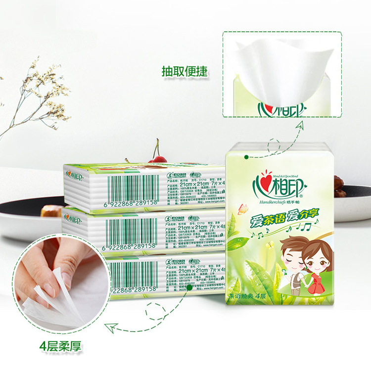 Xinjiang Tibet Xinxiangyin handkerchief paper tea language napkin 4 layers 6 pieces 72 packs small tea fragrance portable paper towel