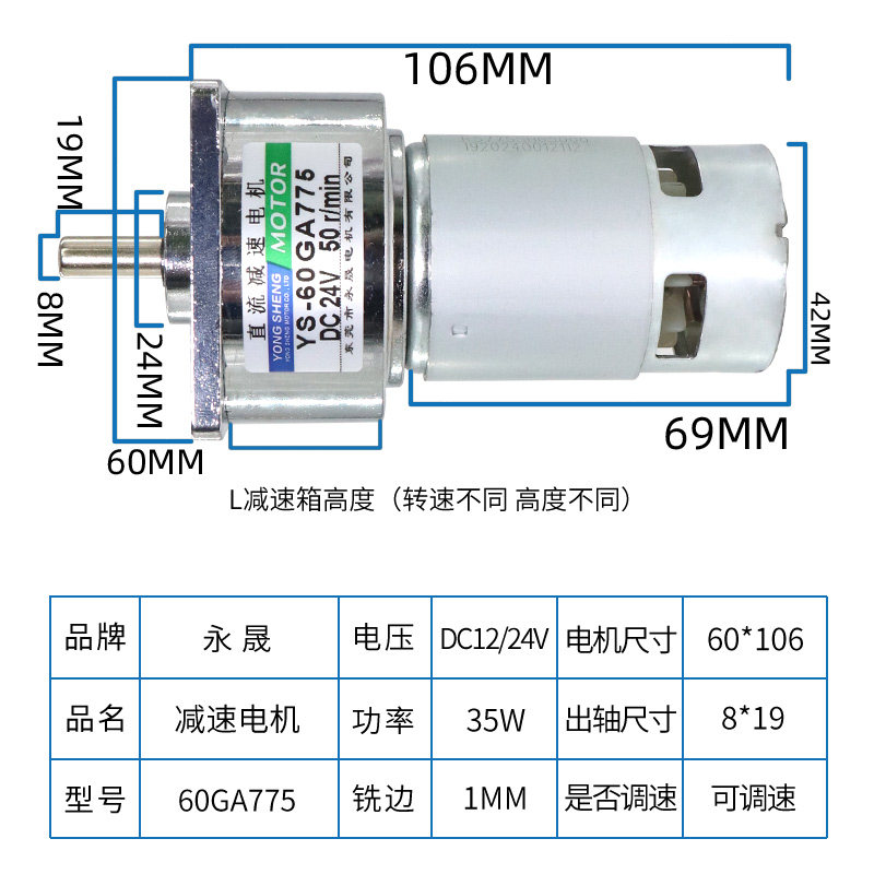 60GA775 DC decelerated motor 12v micro slow small motor 35w adjustable throttle large torque positive reversal 24v-Taobao
