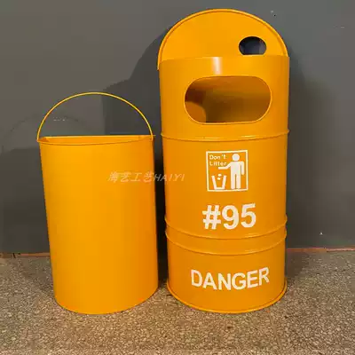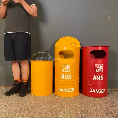 Wrought iron retro semicircular oil barrel garbage can creative home storage tube practical props adherent wall decoration decoration