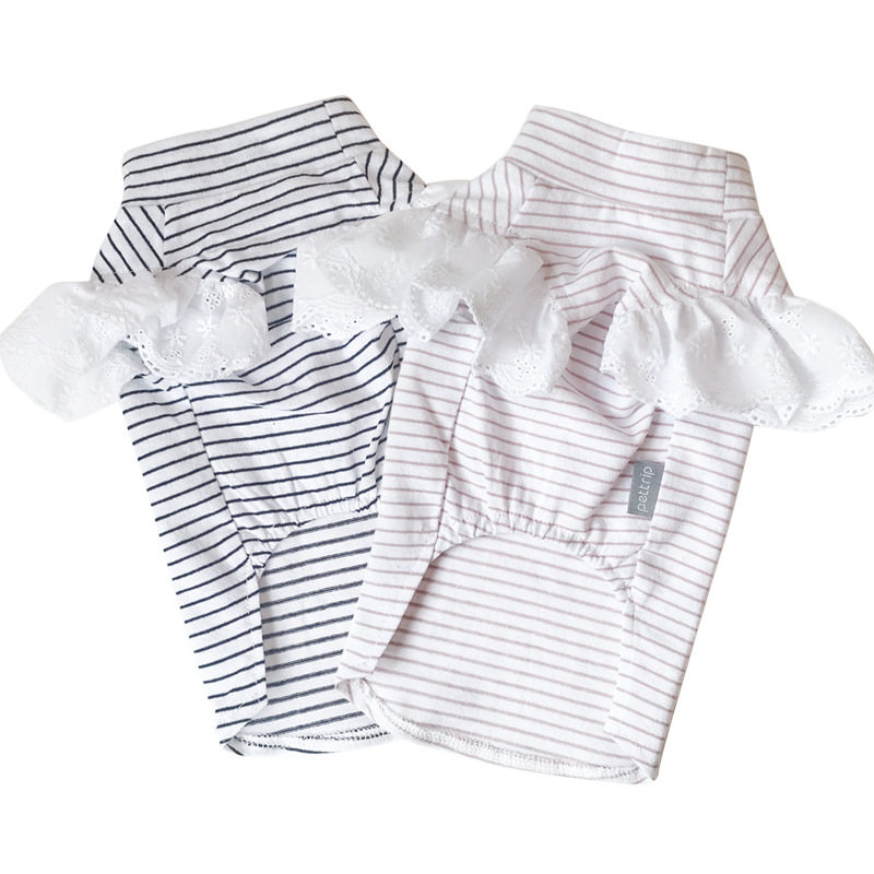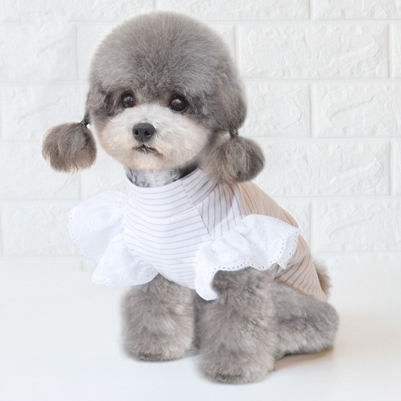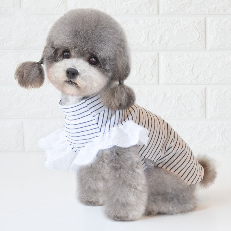 Dogs clothes 2022 new summer thingies Princess lace T-shirt cute striped female teddy Beaumeins two feet