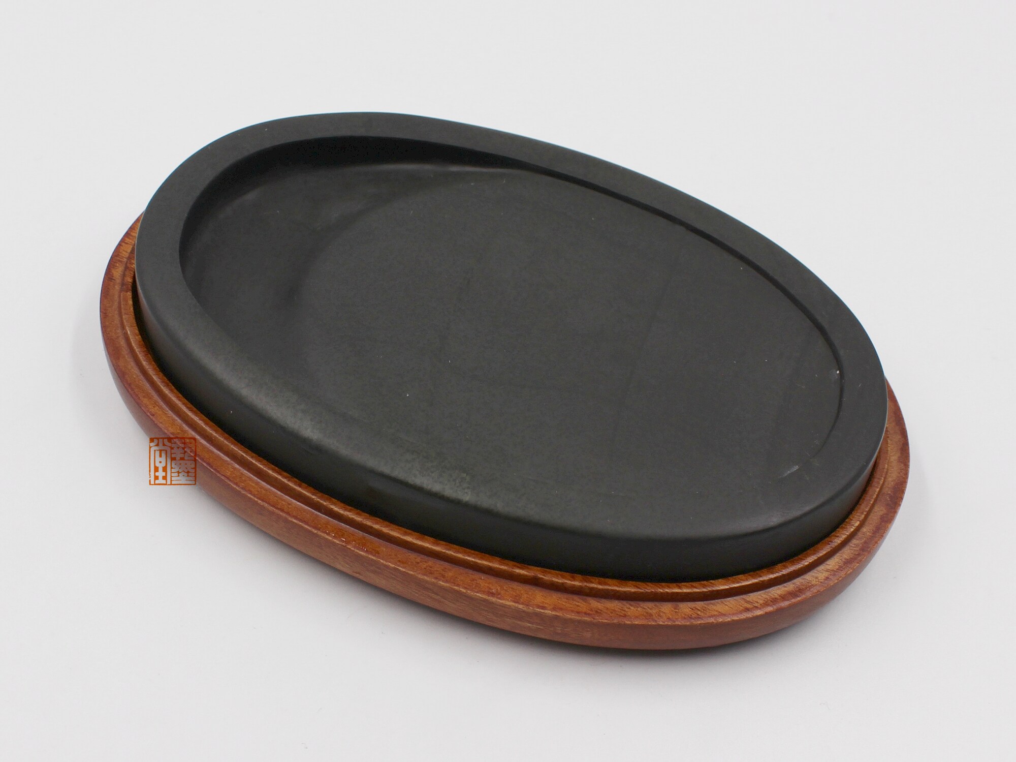 Waist round pond small inkstone She inkstone in the 1970s Meizikeng fish roe eyebrow pattern bag inkstone table small regular calligraphy and painting inkstone table