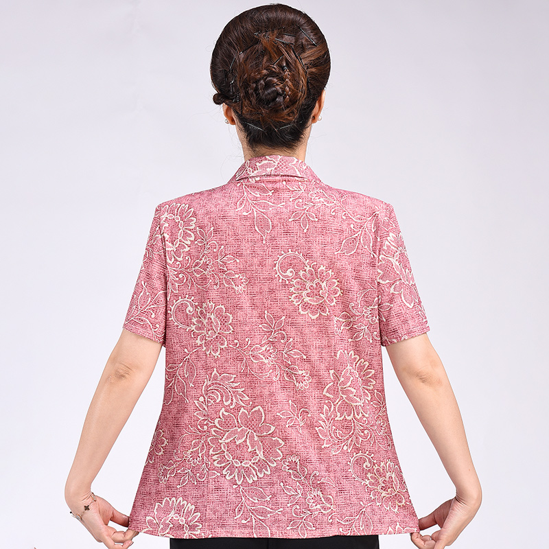 2022 Summer New Products in the elderly women's clothing with large printing short sleeved shirt fat mother loose blouse