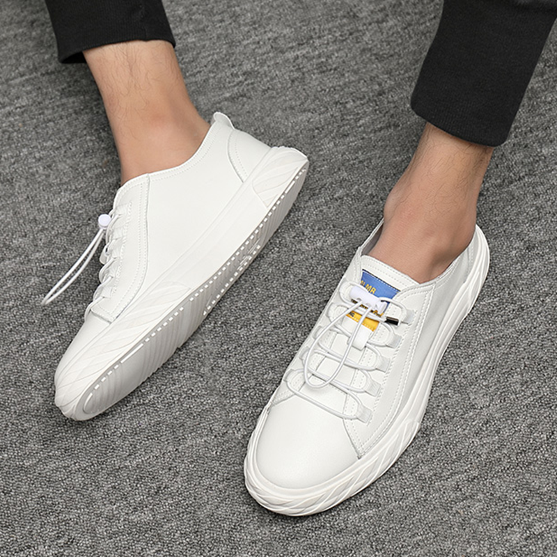 Men's shoes 2020 Spring new trends Small white shoes genuine leather Korean version 100 lap breathable one foot pedal sloth casual shoes