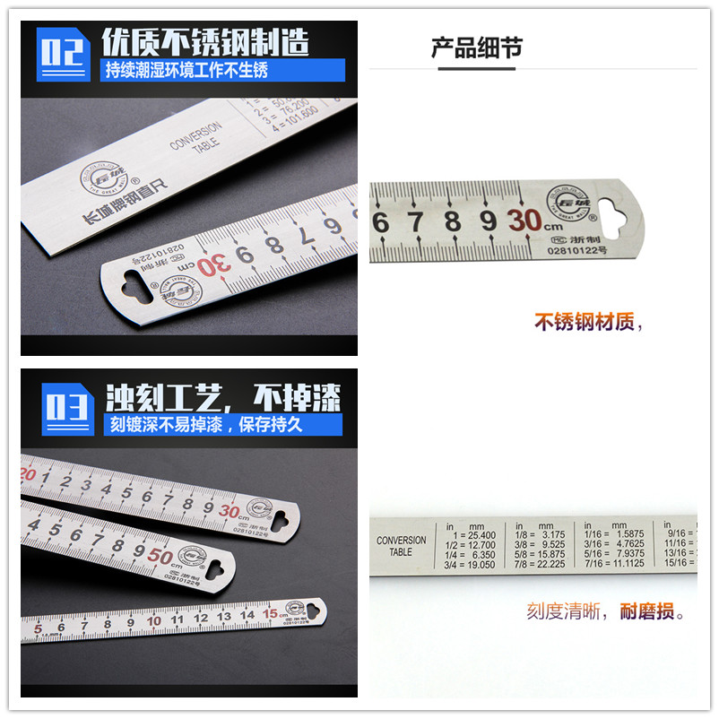 Great Wall card steel ruler 30cm thickened one meter steel sheet ruler 50 60cm long straight iron ruler stainless steel ruler 1 m 5