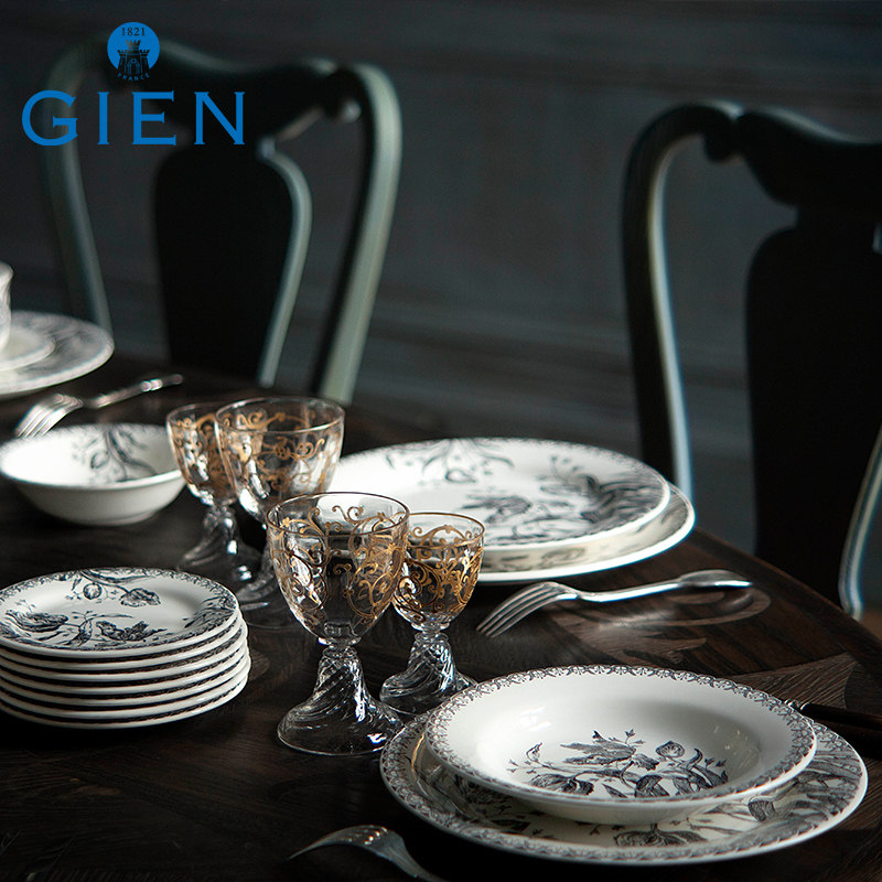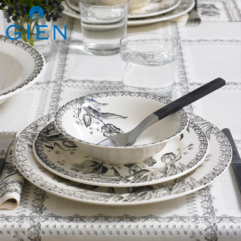 GIEN French imported tableware ceramic dinner plate dessert plate dinner bowl tea set gift household black tulip series
